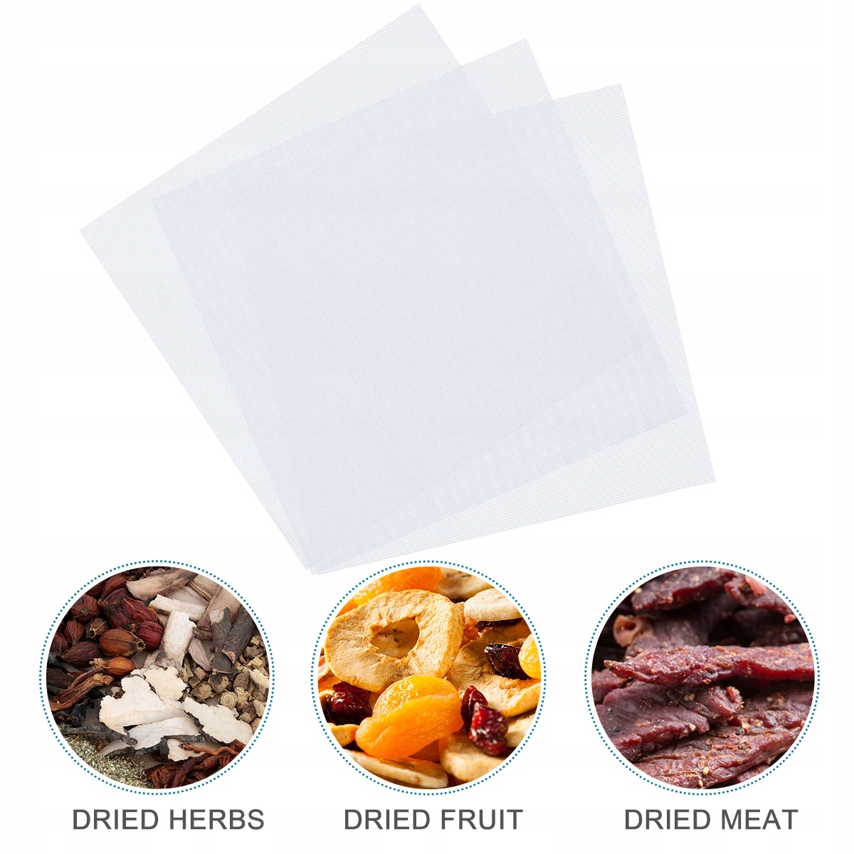 дренажные листы разработаны с быстрой сеткой сушки пищи. Просто положите по одному листу на каждый из лоток сушилки, прежде чем начать обезвоживающую пищу, и очистка будет такой же простой, как промывание любого листа горячей воды с мылом. Никогда больше не чистка!
