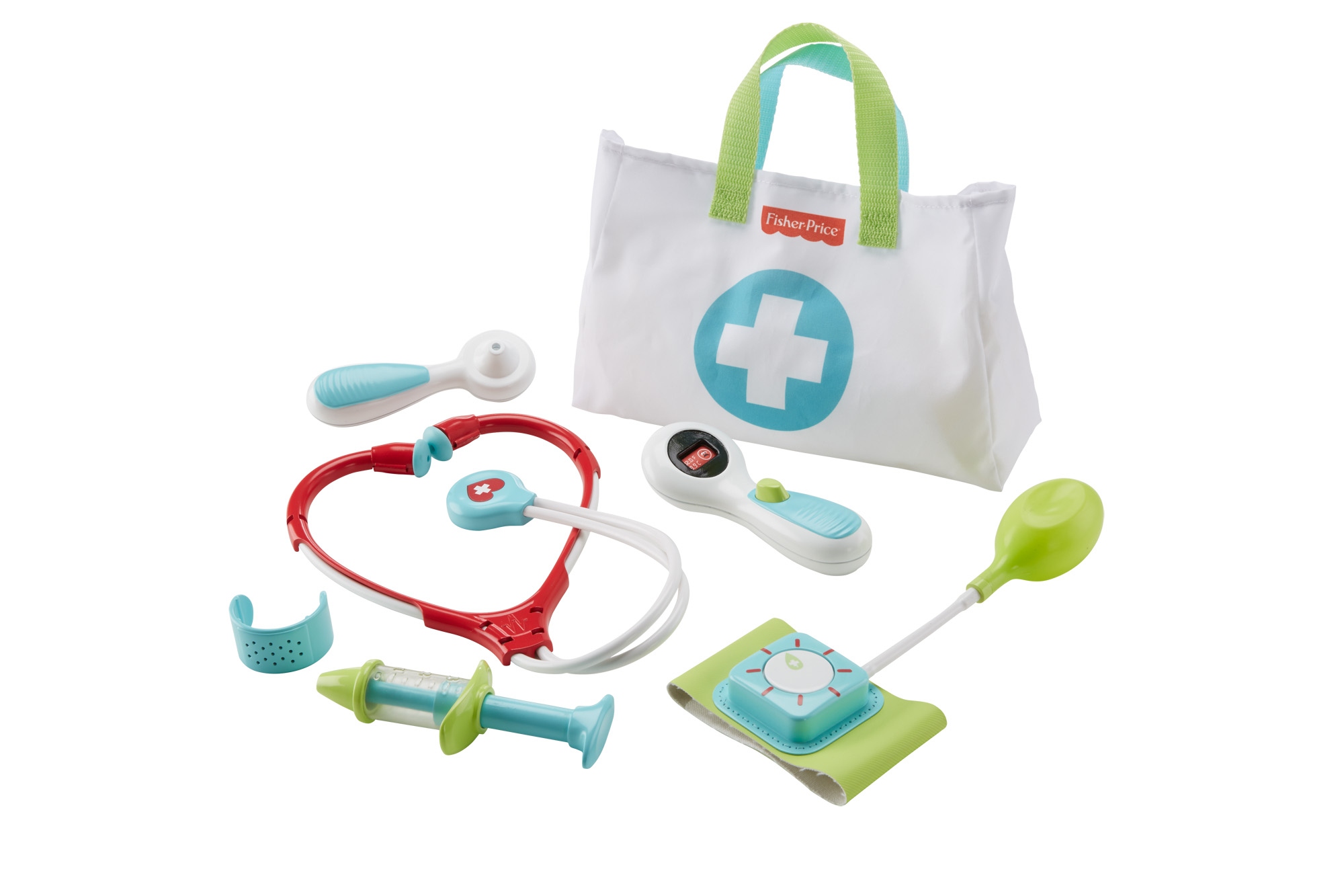 В палате есть врач? Сейчас да! Благодаря набору «Маленький доктор» от Fisher-Price дошкольники могут надеть белые халаты и принять участие в увлекательной ролевой игре. Будущие медицинские работники смогут «слушать» сердцебиение пациентов с помощью стетоскопа, «измерить» им температуру термометром (нажмите кнопку, чтобы изменить настройку с «больной» на «здоровый»!), заглянуть им в уши с помощью отоскопа, или наденьте манжетку для измерения давления и посмотрите, что показывает индикатор! Теперь ваш малыш сможет быстро перевязать любой мнимый синяк благодаря повязке, входящей в комплект. Даже инъекции станут приятнее с игрушечным шприцем. Ваш маленький доктор получит огромное удовольствие, проверяя здоровье всех пациентов в семье, своих мягких игрушек... и даже собаки. Веселье, которое развивается. Здоровые привычки. Посещение врача может вызвать у детей дошкольного возраста противоречивые эмоции. Благодаря набору «Маленький доктор» малыши смогут играть в ролевые игры, а также привыкать к визиту к врачу. Воображение: дошкольники разыгрывают сценарии ролевых игр, изображая, что ухаживают за пациентами. Обмен и сотрудничество. Малыши учатся сотрудничать и открывают для себя радость смены ролей: иногда они врачи, иногда пациенты.