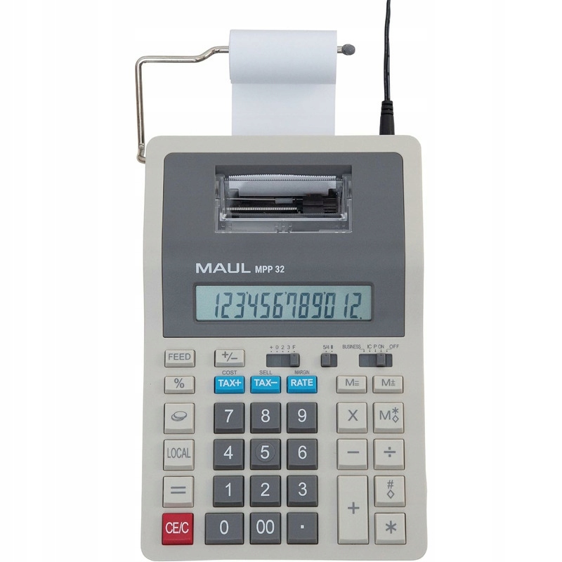 - Настольный калькулятор с принтером Maul MPP32 серого с большим 12-позиционным ЖК-дисплеем.