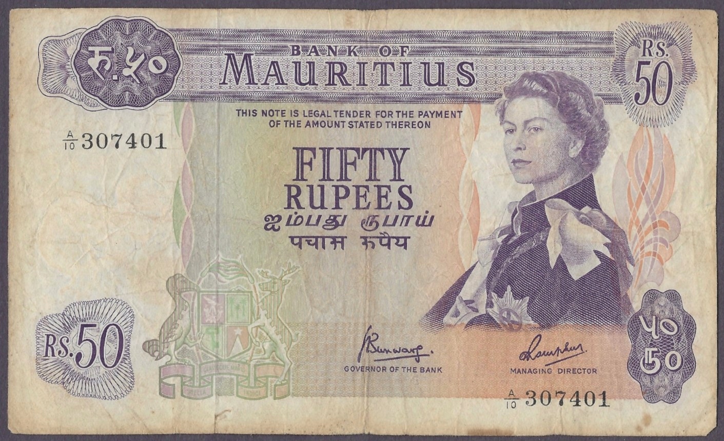Mauritius - 50 rupees 1967 (VG)
