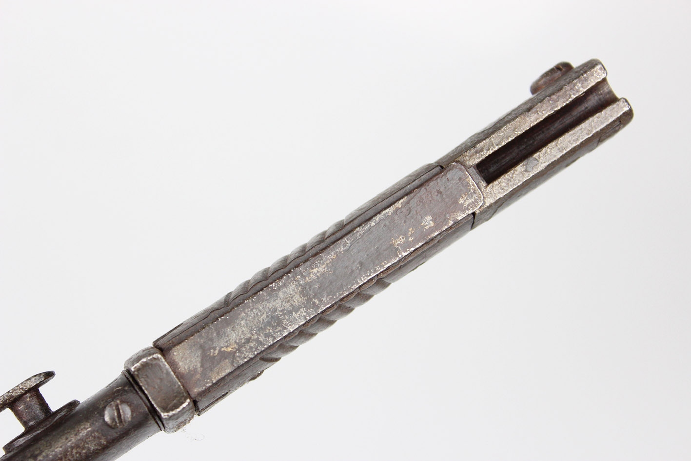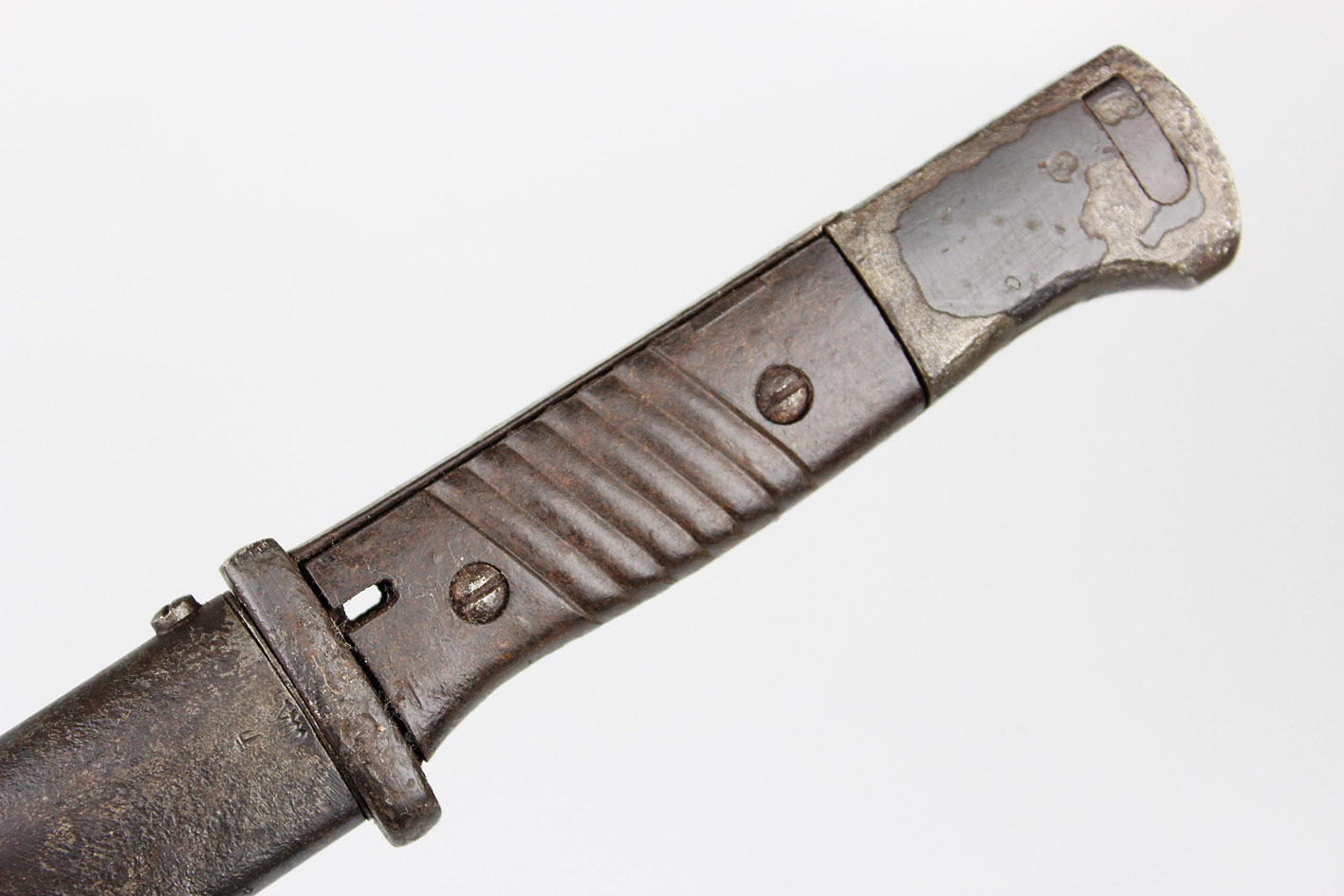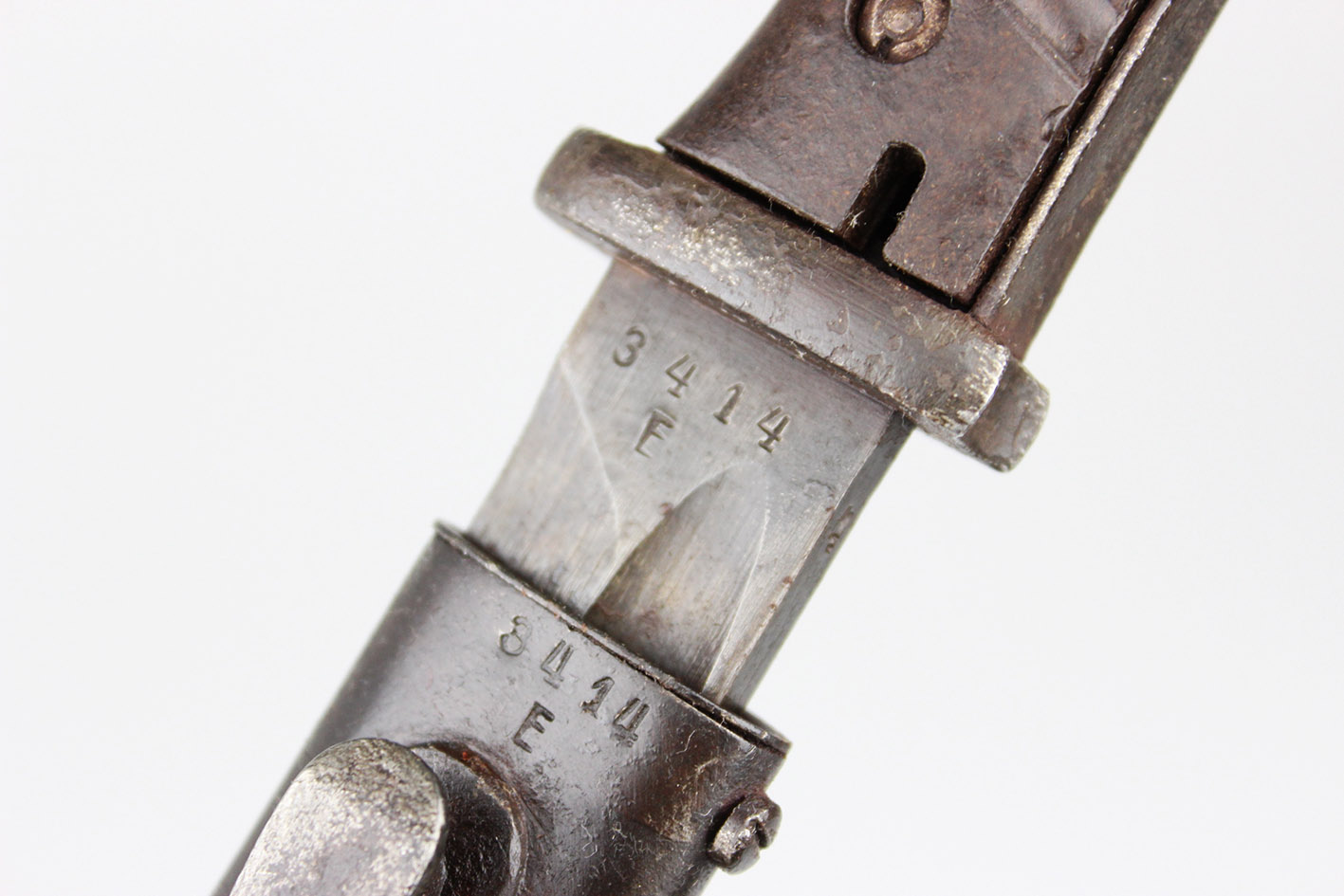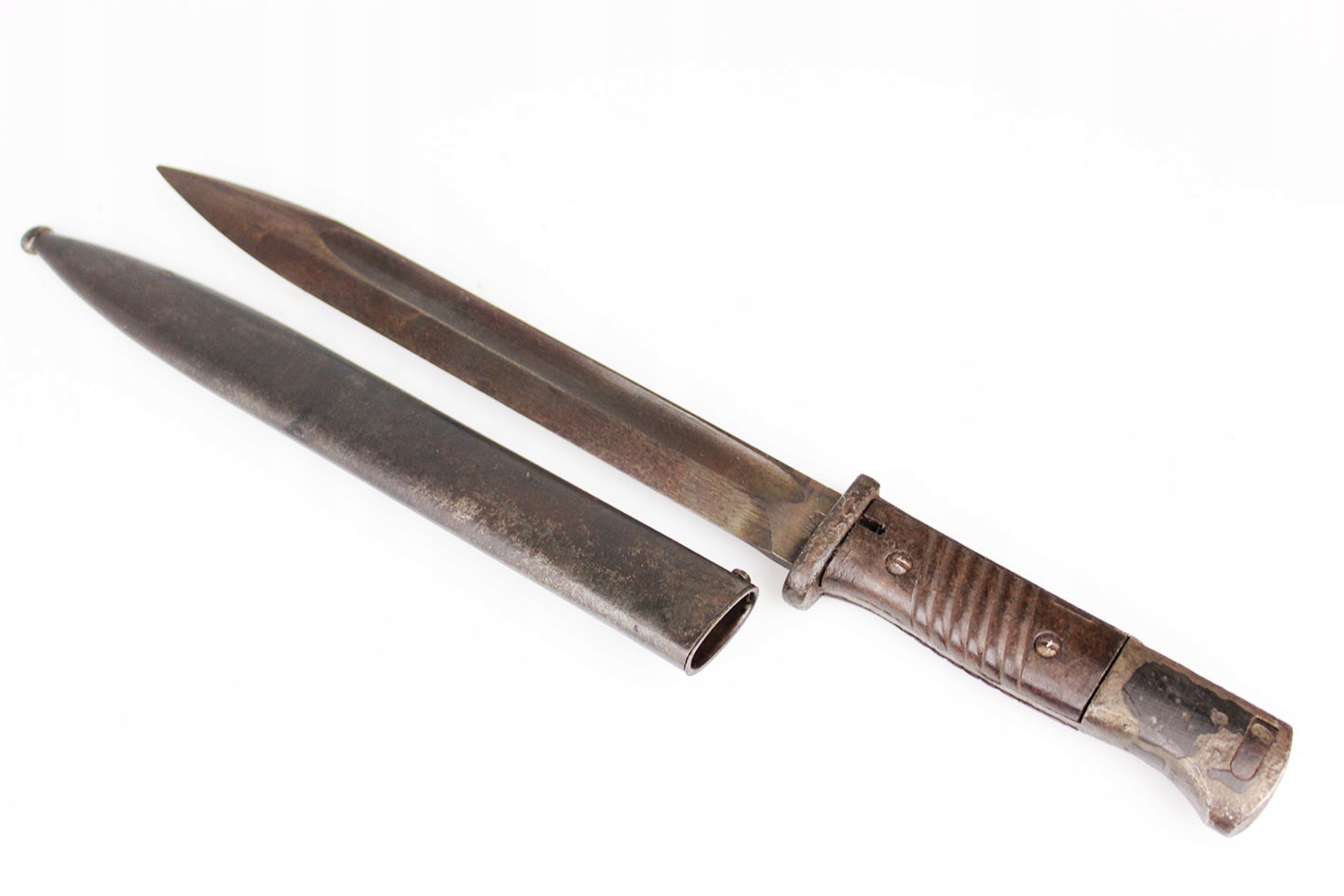 Второй и последний немецкий штык для винтовки K98 с третьего периода рейха, модель S84/98 с влагалищем. Австрийский продюсер: genossenschafts maschinenhaus der buchsenmacher в Ferlach . Байонет и влагалище подписали с тем же ярлыком производителя , которые будут численно совместимыми штыками с вагинальными числами 3414 e. Оба были сделаны в 1944 году. Замок плотно плотно удушья. Бакелитская облицовка. Что именно на фотографиях.