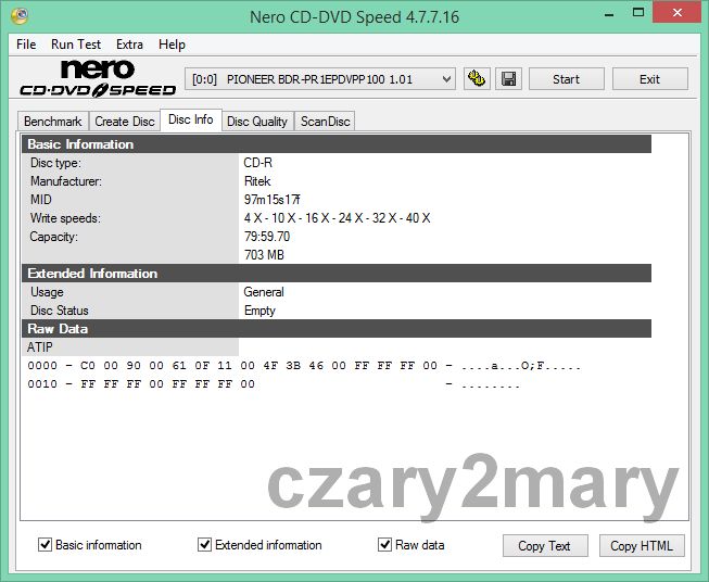 CD -R произвел R на прессовом заводе «Ритек» с кодом Ritek ATIP MID: 97m15s17f\.