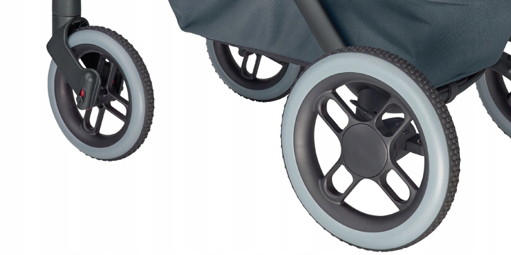 Внедорожные колеса коляски невероятно прочны, не требуют обслуживания и устойчивы к проколам. Мягкая подвеска передних и задних колес делает коляску легкой и комфортной в управлении независимо от типа поверхности.