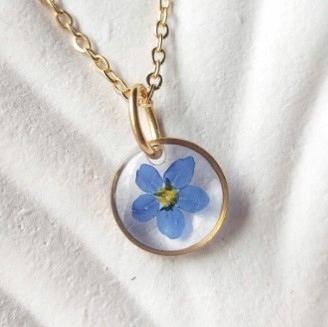 Mały naszyjnik z niezapominajką, biżuteria pozłacana, prezent dla córki