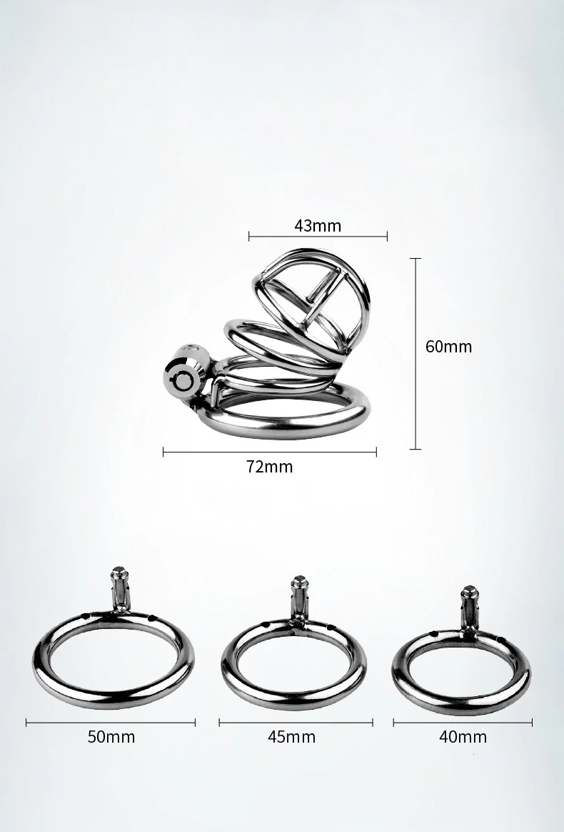 Mały Stalowy pas cnoty, Chastity Belt klatka na penisa 3 pierścienie