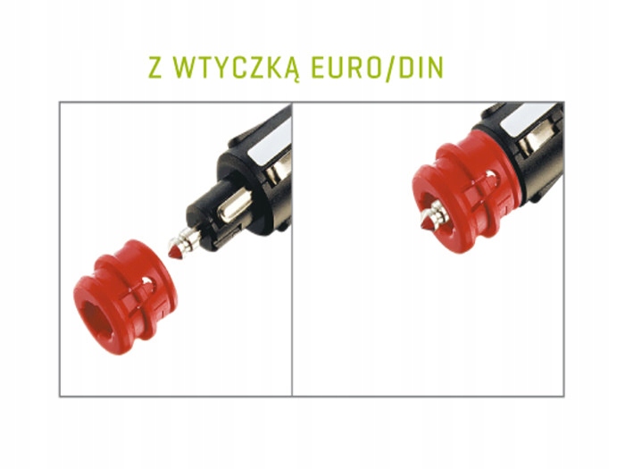 Она оснащена вилкой со съемным красным наконечником, которая служит переходником EURO/DIN.