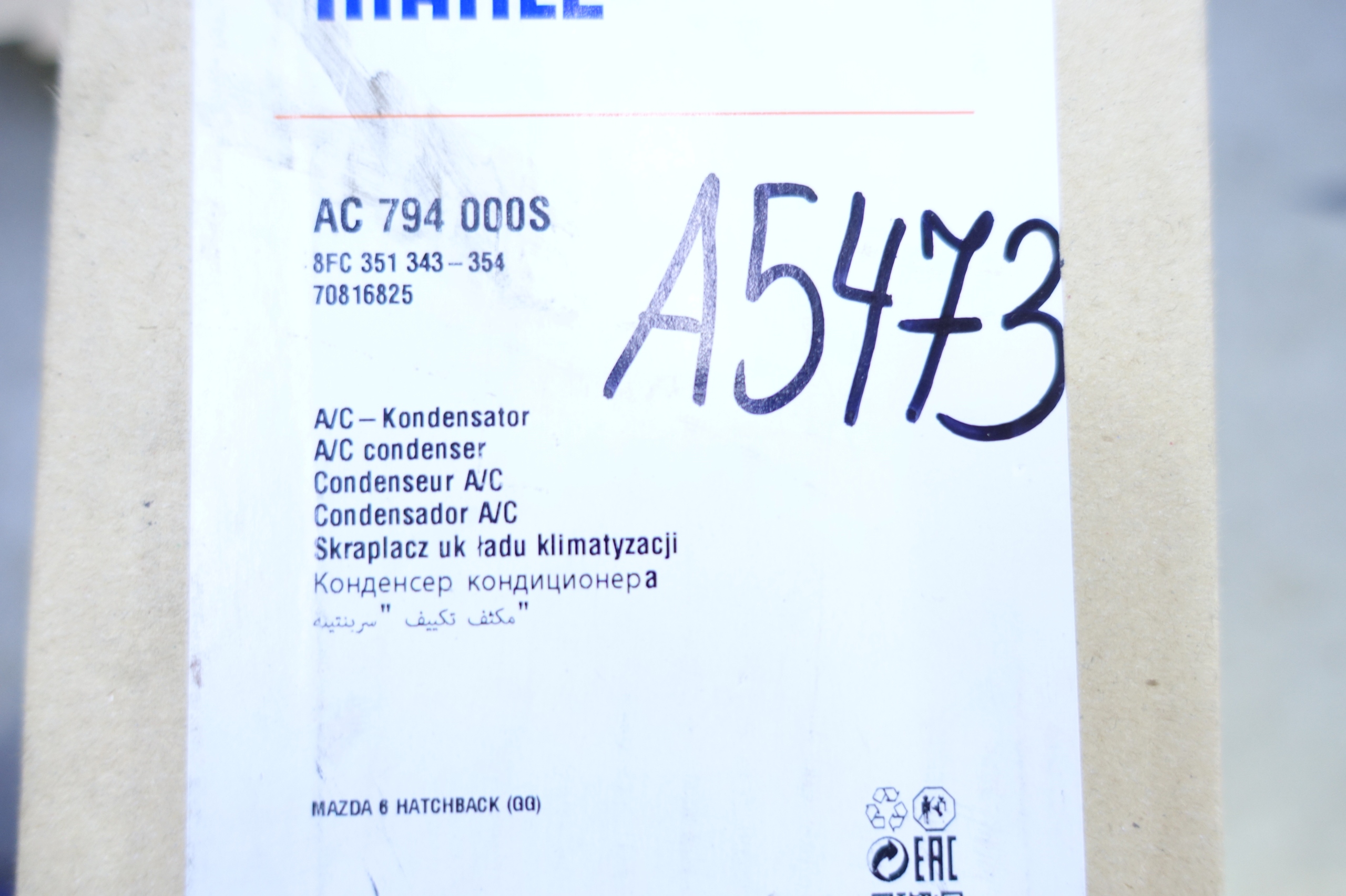 Заказывая «MAZDA 6 1.8 2.0 2.3 MAHLE» данный товар из каталога «Охладители кондиционера (конденсаторы)» вы можете быть уверены, что после оформления заказа, доставки в Украину, вы получите именно то, что заказывали, в оговоренные сроки и европейского качества.