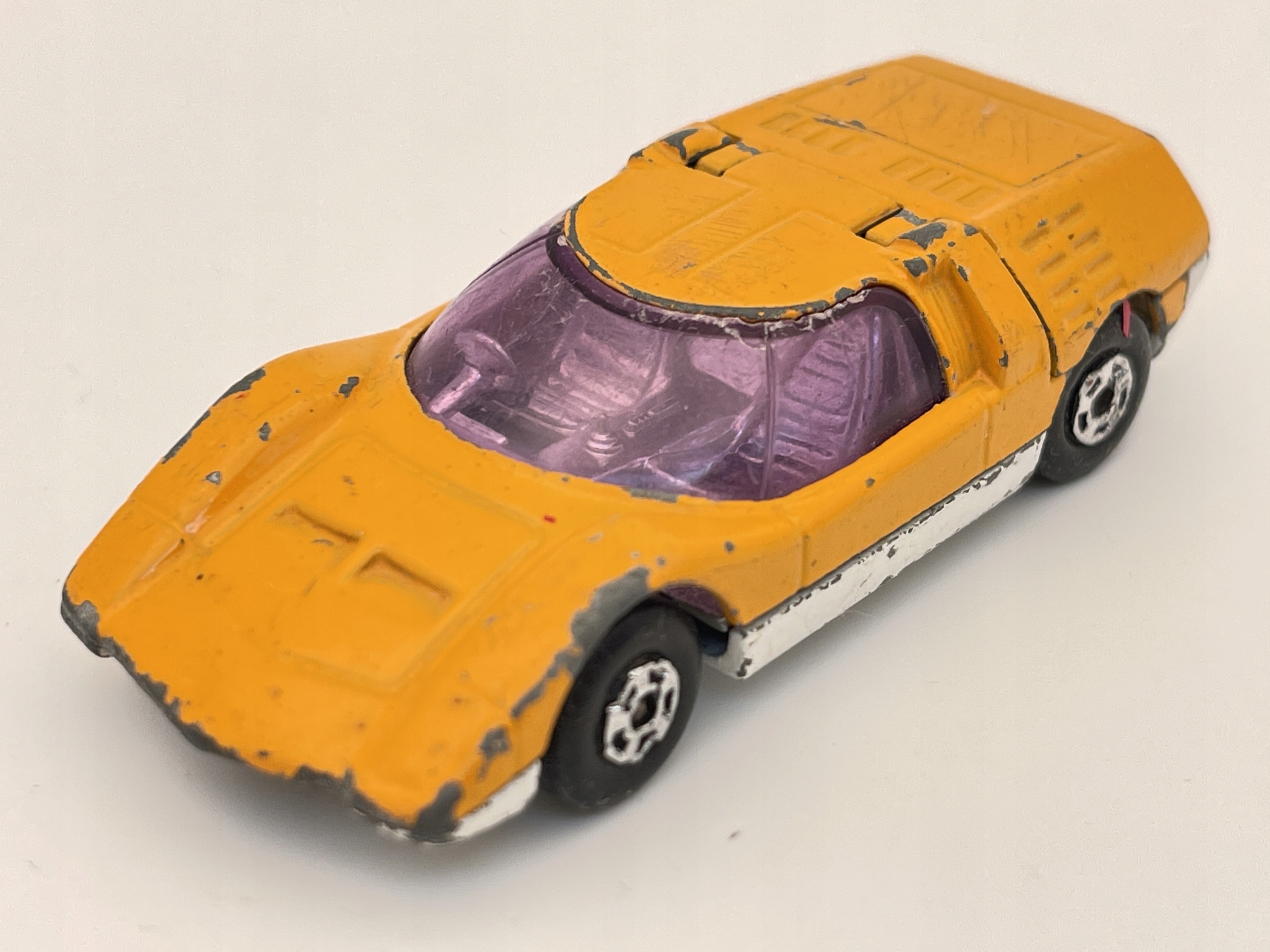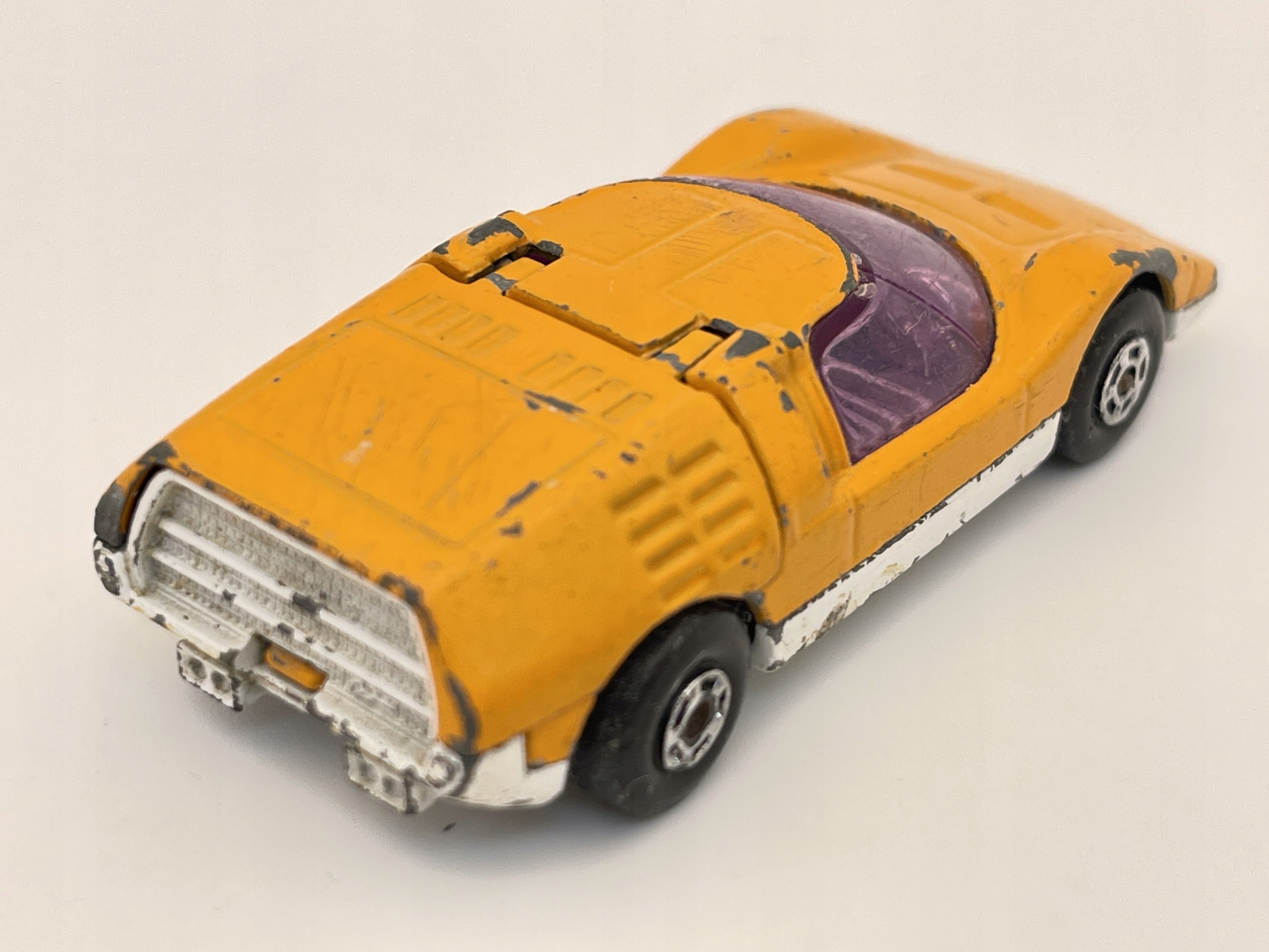 Амортизатор Mazda RX 500, производимый компанией Lesney Products & Co Ltd под брендом Matchbox, представляет собой уникальную модель в масштабе 1:64. Он отличается металлическим корпусом интенсивного желтого цвета, который в сочетании с фиолетовыми окнами привлекает внимание и придает ему футуристический вид. Игрушечная машинка длиной 77 мм, несмотря на видимые царапины и складки, сохраняет свое очарование и коллекционную ценность. Отсутствие дополнительных элементов, таких как спойлеры или открывающиеся двери, подчеркивает его простоту и классический дизайн. Эта модель, произведенная в Англии в 1971 году, имеет каталожный номер 66 и ценится за прочное металлическое исполнение.