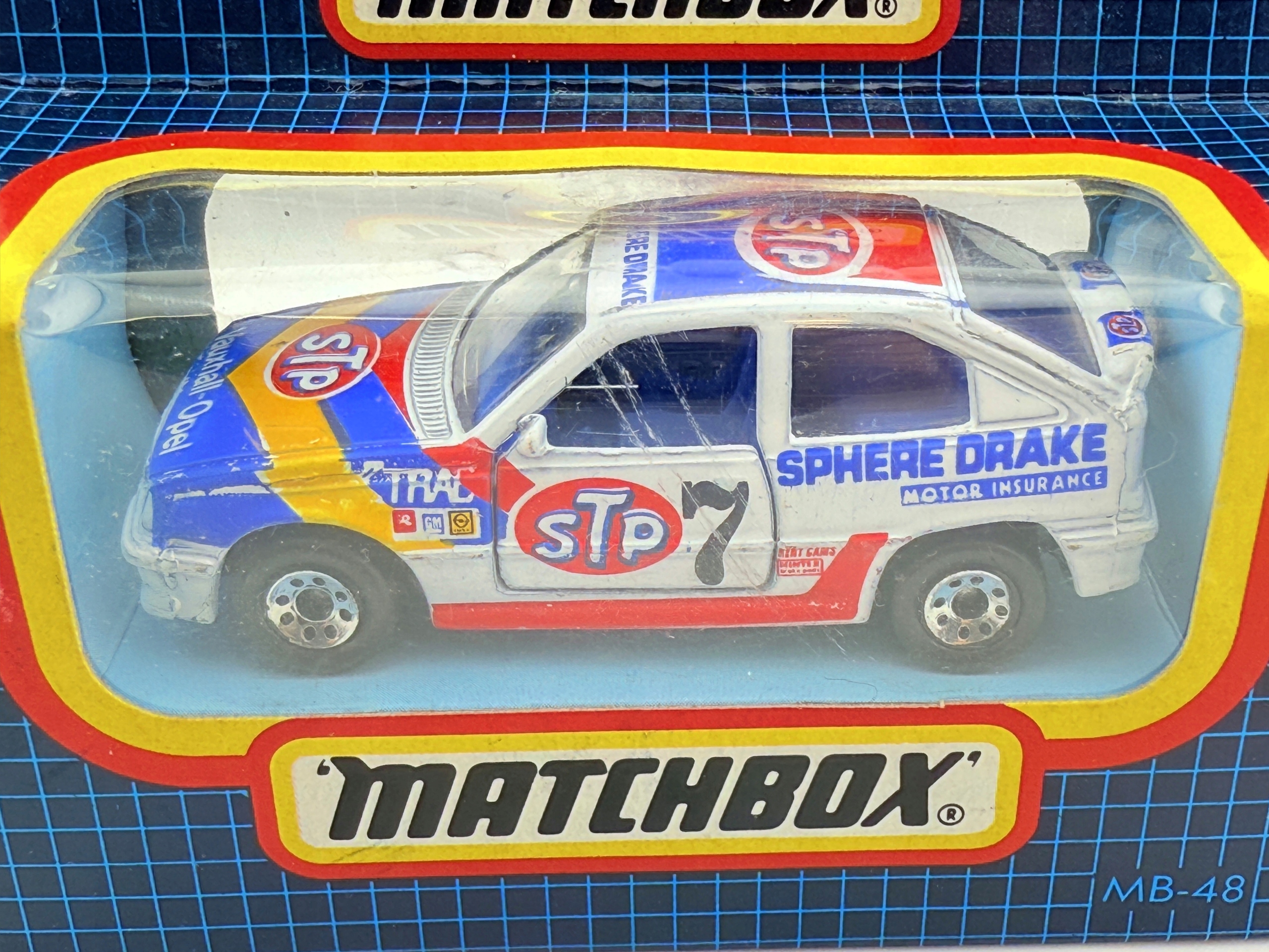 MB48 Opel Kadett Vauxhall Astra GTE, Спичечный коробок, Коробка с синей сеткой, 1:60