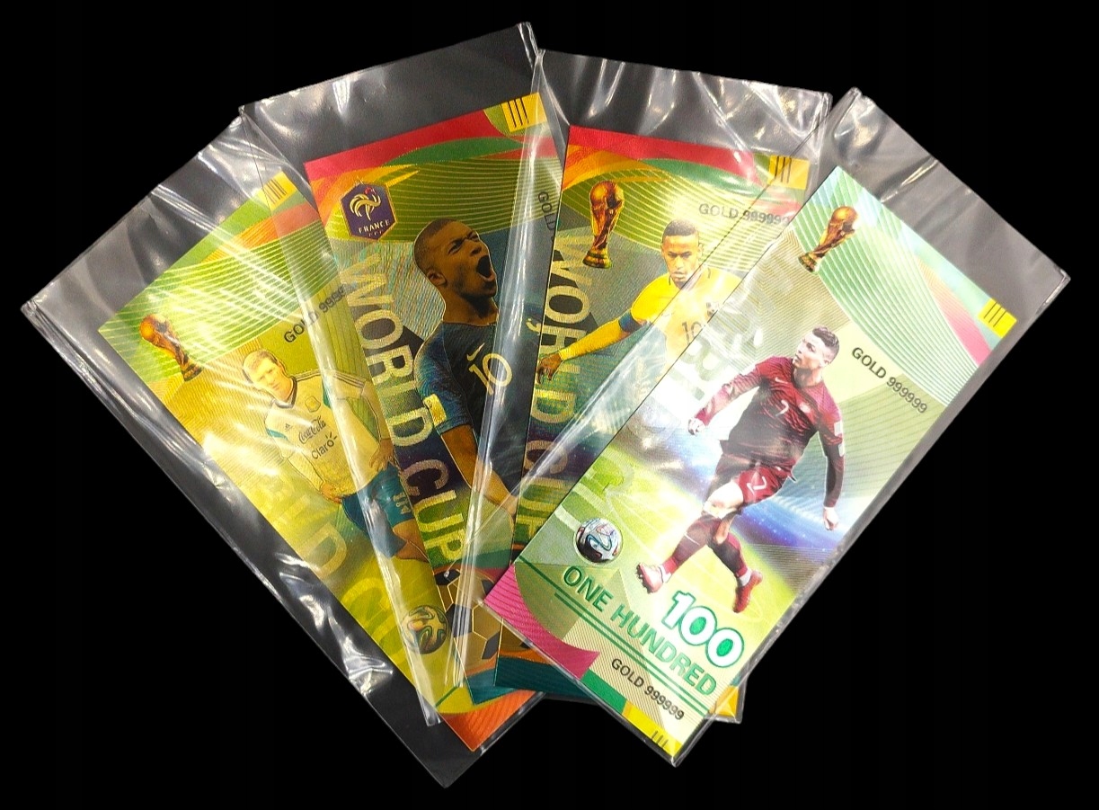 Вы настоящий футбольный фанат? Теперь в вашей коллекции появится уникальный кусочек футбольной истории! Представляем вам ограниченный набор банкнот с изображением величайших звезд футбола всех времен: Месси, Роналду, Неймара и Мбаппе!