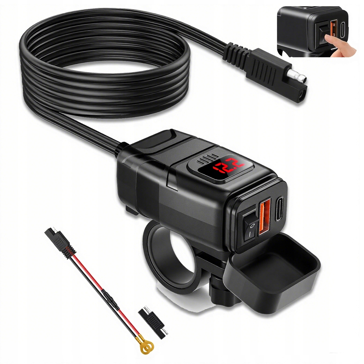 MC1N-PD ЗАРЯДНИЙ ПРИСТРІЙ МОТОЦИКЛ 2x USB QC3.0 ШВИДКА ЗАРЯДКА Автомобільний USB-C