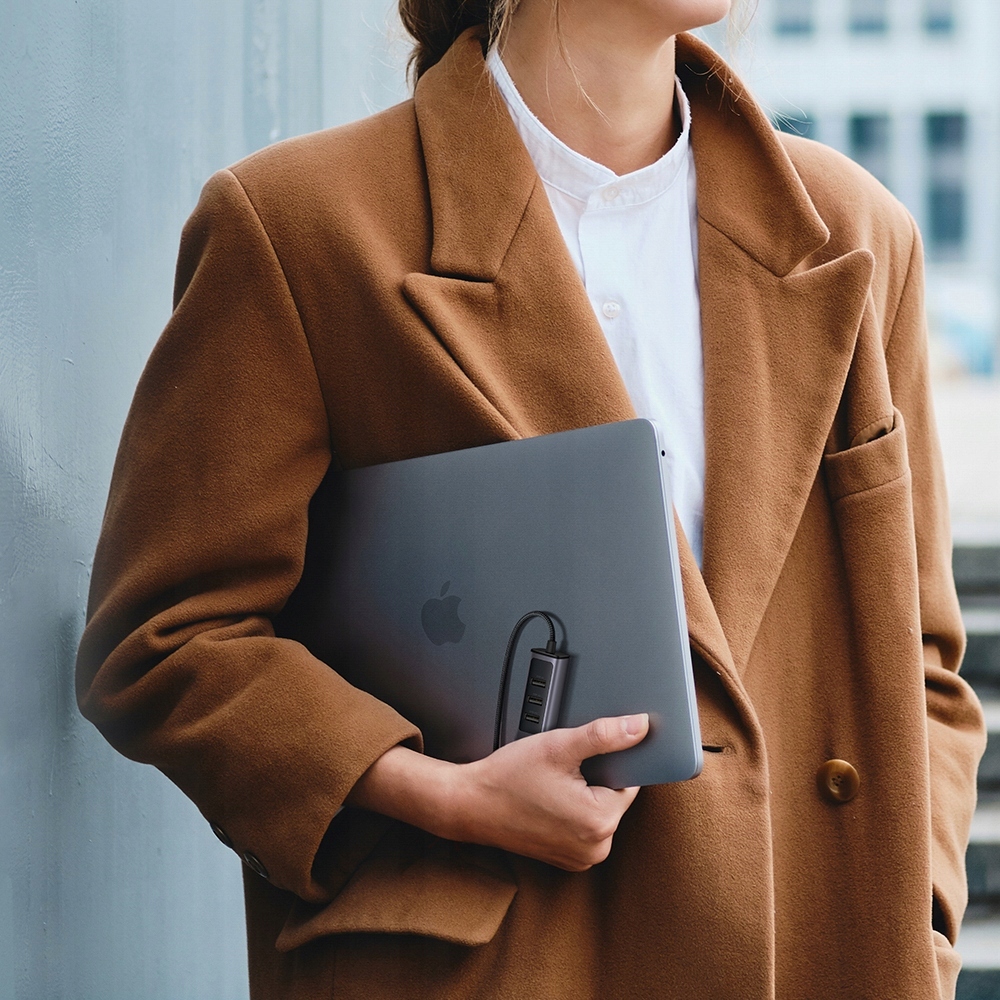 Концентратор изготовлен из полированного алюминия высочайшего качества, поэтому он отлично смотрится с вашим MacBook. В сочетании с прочной усиленной оплеткой кабеля это то, что вас заводит.