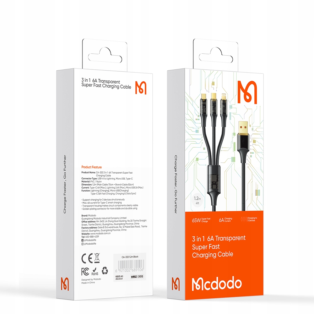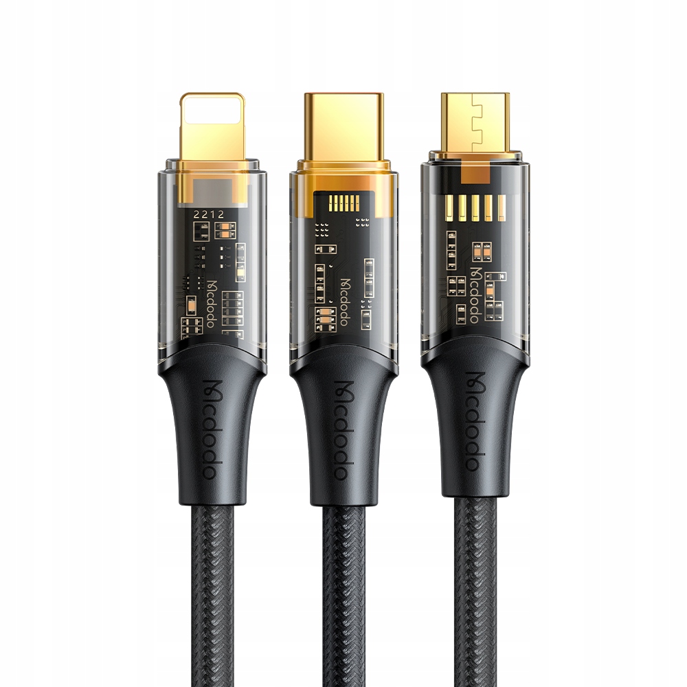 Mcdodo Amber Series Micro USB-кабель Lightning USB-C 3 в 1, 100 Вт, 6 А, 1,2 м
