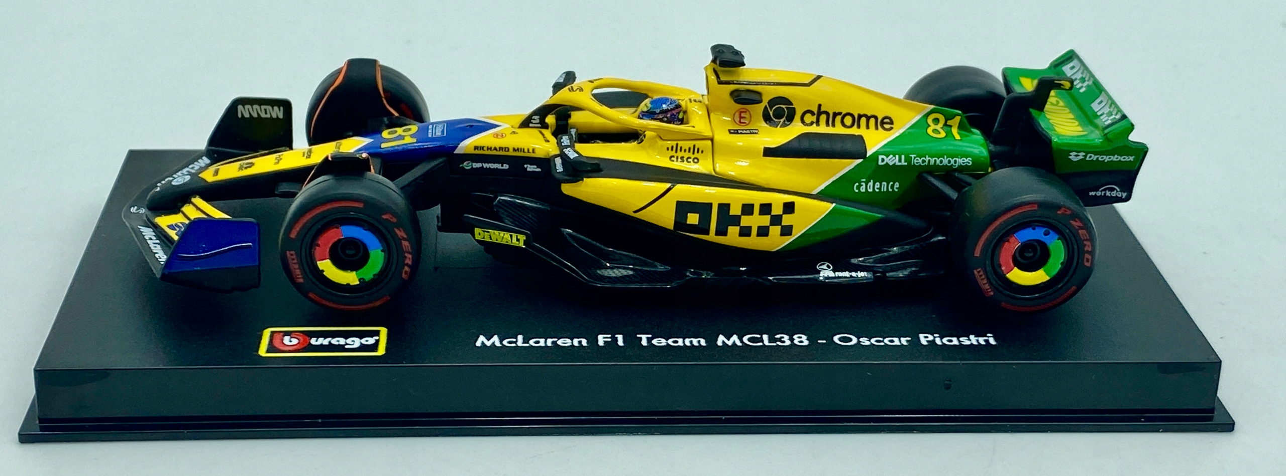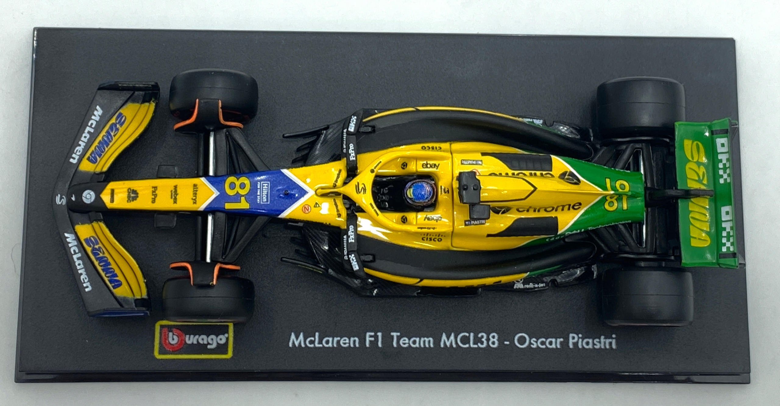 Автомобиль MCL38 McLaren F1 Team Formula (модель Bburago, номер детали: 18-38215 SP#81) стартовый номер 81 - Оскар Пиастри, сезон 2024 года