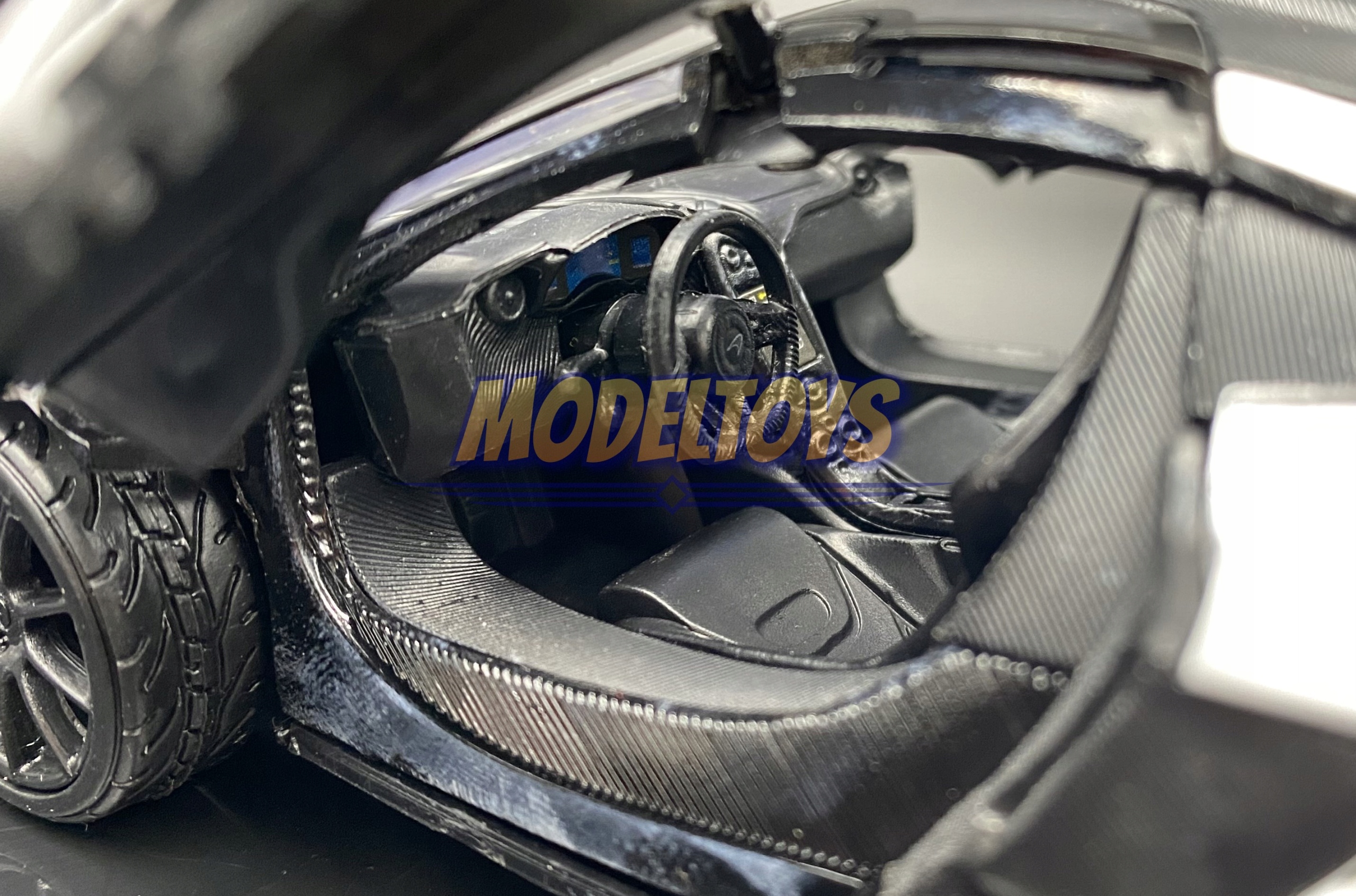 Модель автомобиля характеризуется вниманием к деталям. Имеет подвижные элементы - двери, колеса.