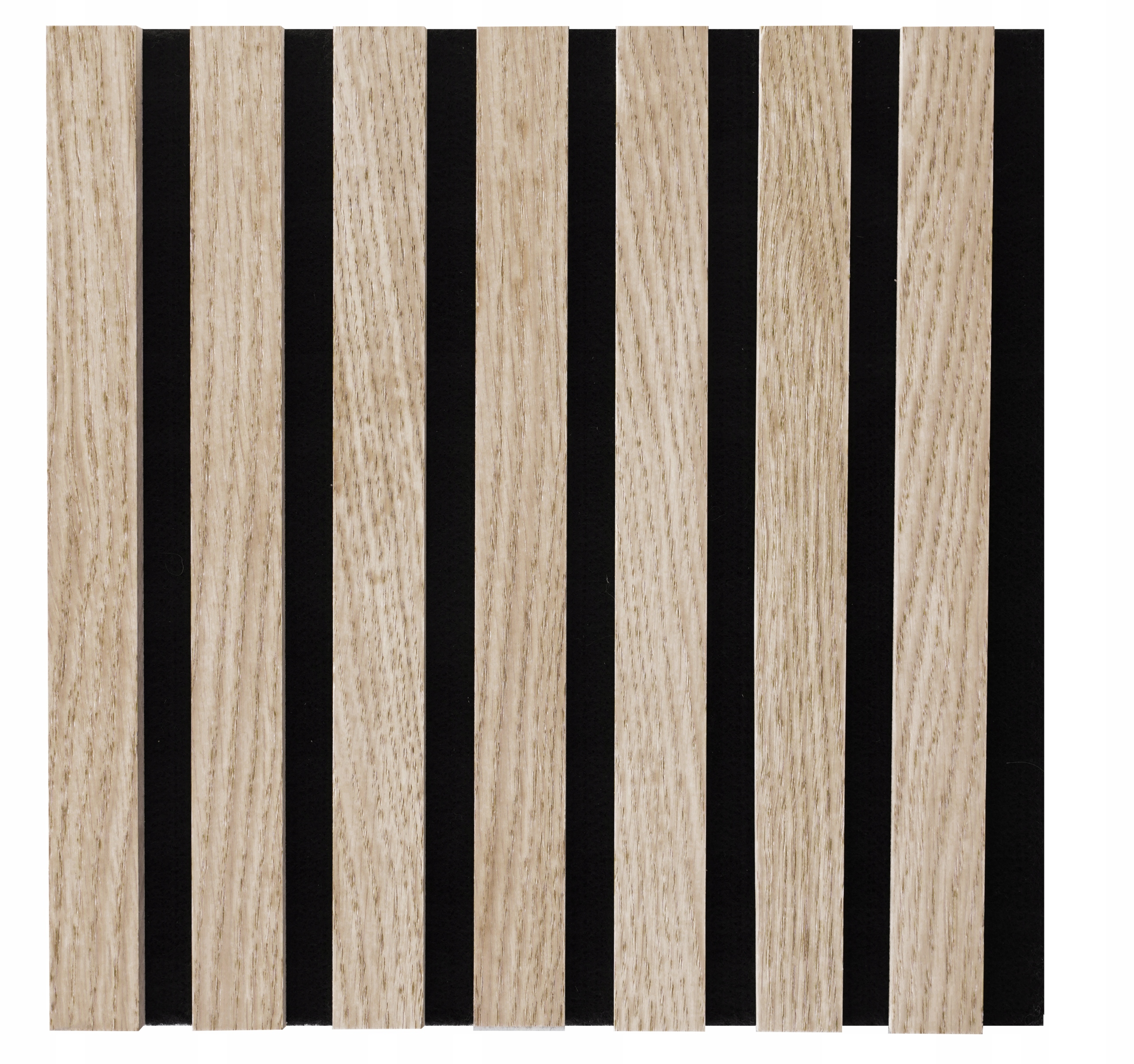 Наши рейки изготовлены из основы из черного фетра и планок МДФ покрыты натуральным дубовым шпоном.
