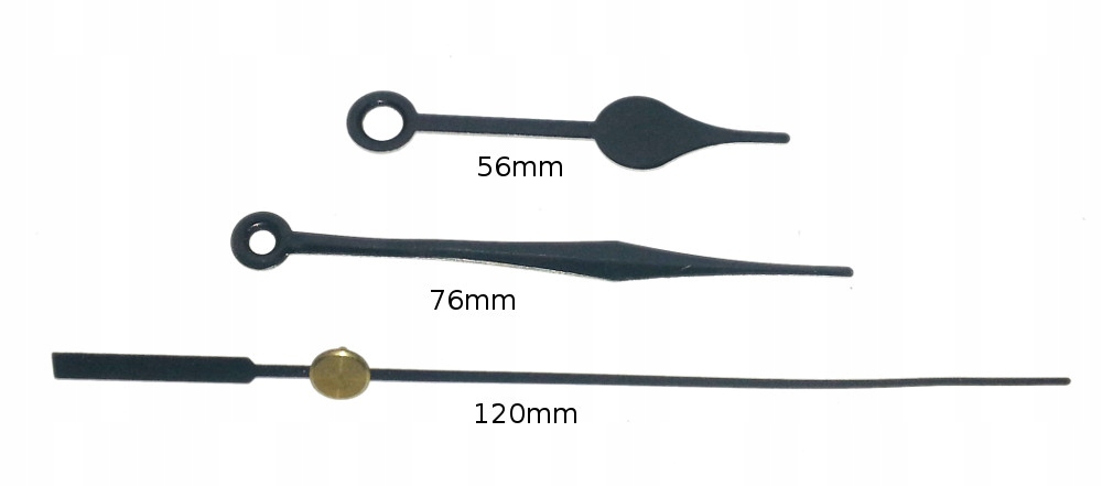 Механизм оснащен подвеской, позволяющей повесить часы на стену и стрелки длиной (общая):