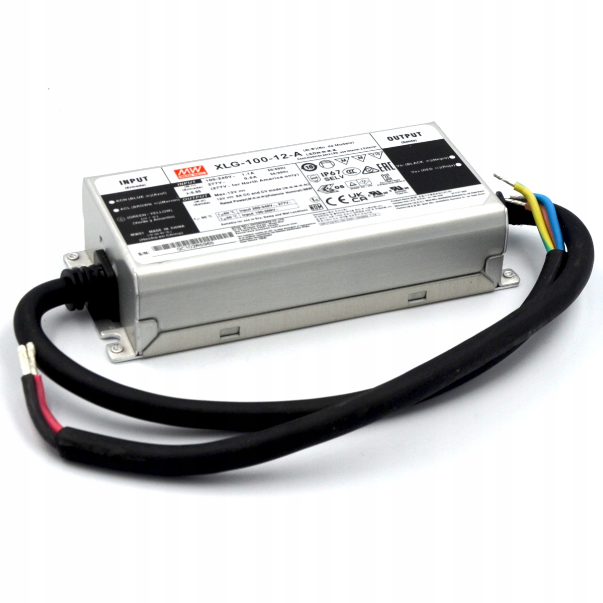 Профессиональный источник питания постоянной мощности Mean Well XLG-100-12A 12V DC, предназначенный для светодиодного освещения, в металлическом корпусе, класс герметичности IP 67, с активный фильтр PFC, номинальная мощность 96 Вт.