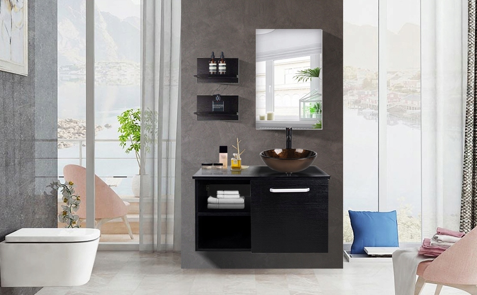 Ванная комната — первое место, которое вы посещаете сразу после пробуждения, поэтому ее необходимо оформить так, чтобы создавать хорошее настроение. Комплект подвесной мебели для ванной комнаты ELECWISH восхищает простой формой и простым внешним видом. Хоть он и состоит из нескольких элементов, на нем легко можно разместить вещи в этой комнате.