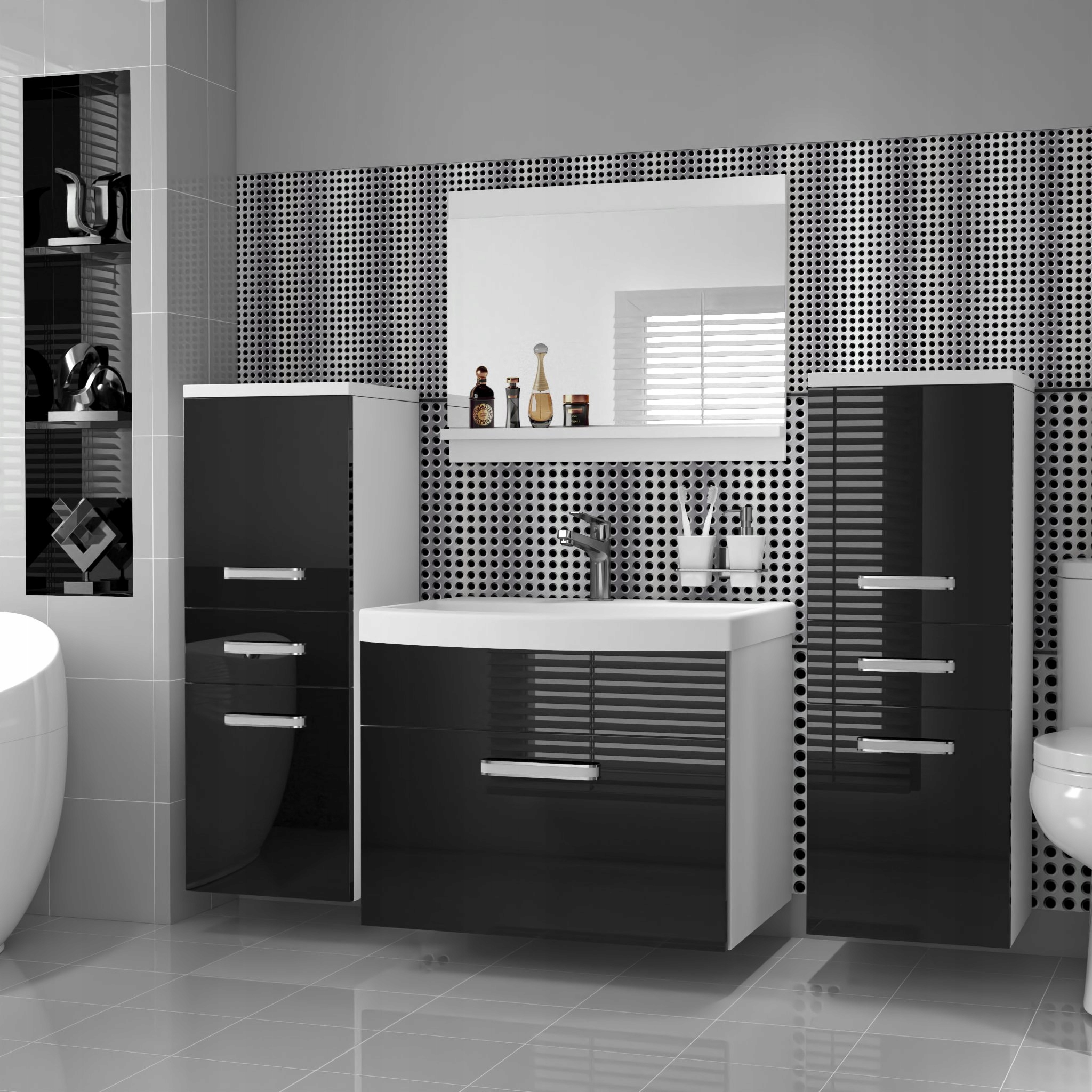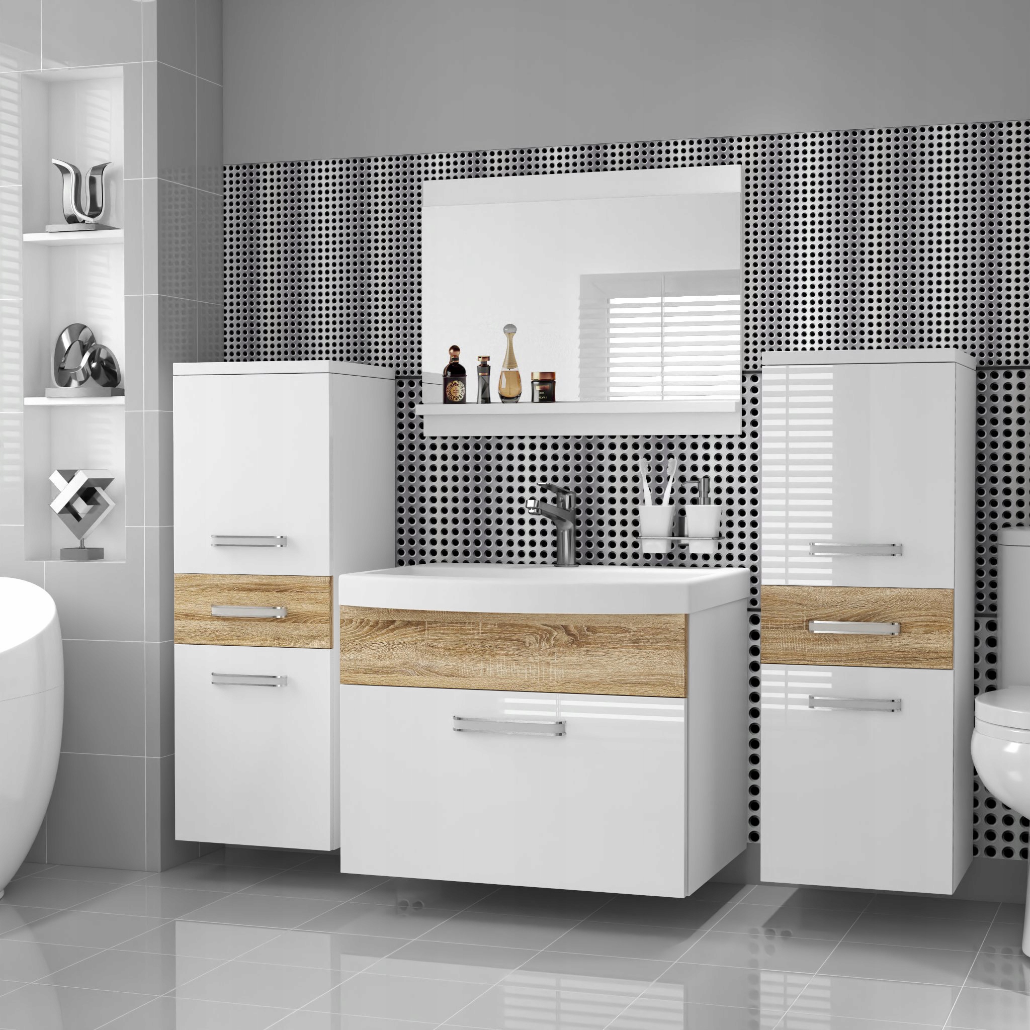 Мебель для ванной комнаты с ЗЕРКАЛОМ и ГЛЯНЦЕВОЙ РАКОВИНОЙ