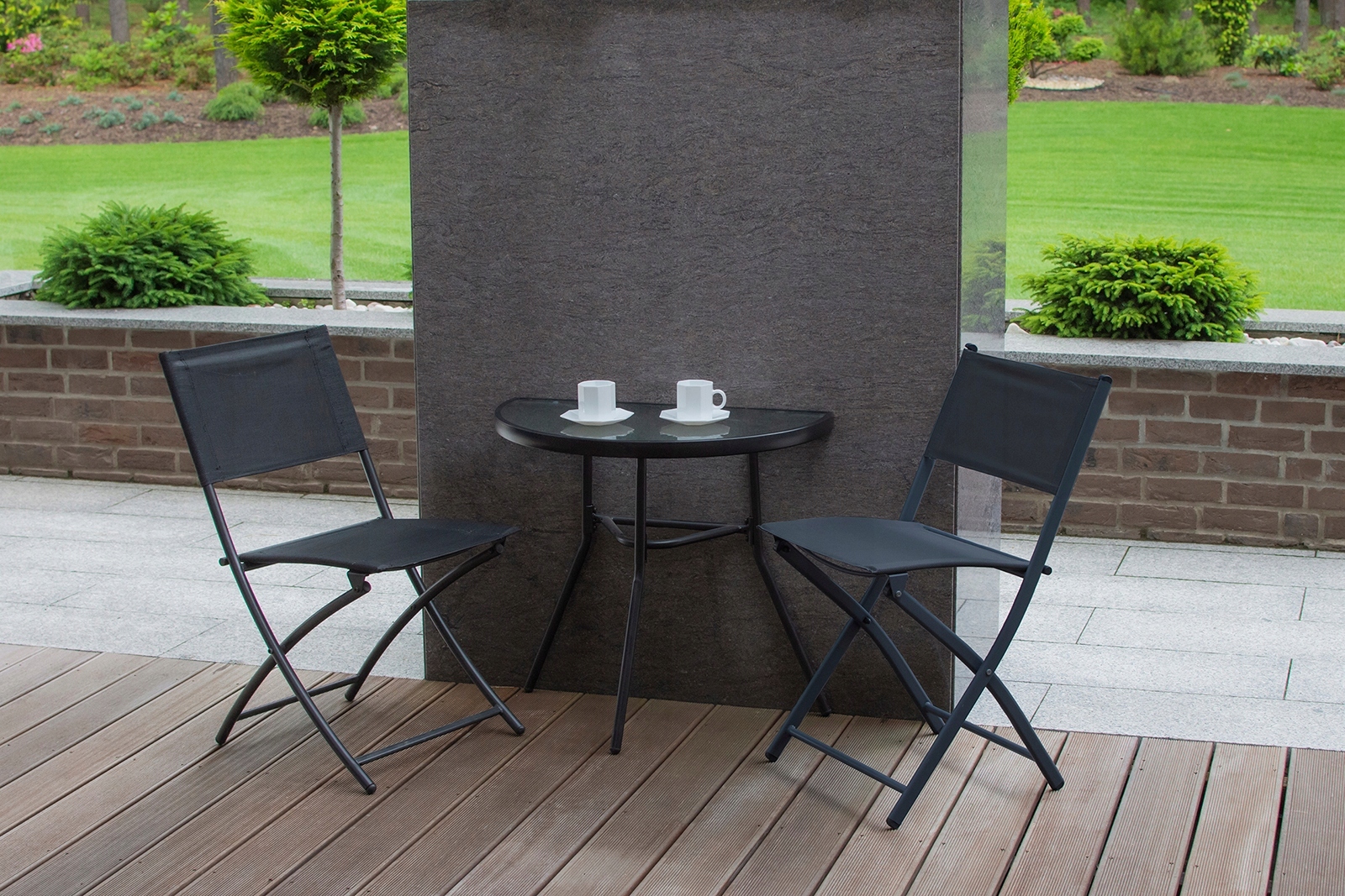 Набор садовой мебели, который будет хорошо смотреться на небольшом балконе или террасе. Плюсом комплекта является возможность складывания стульев, а небольшие габариты облегчают хранение мебели вне сезона.