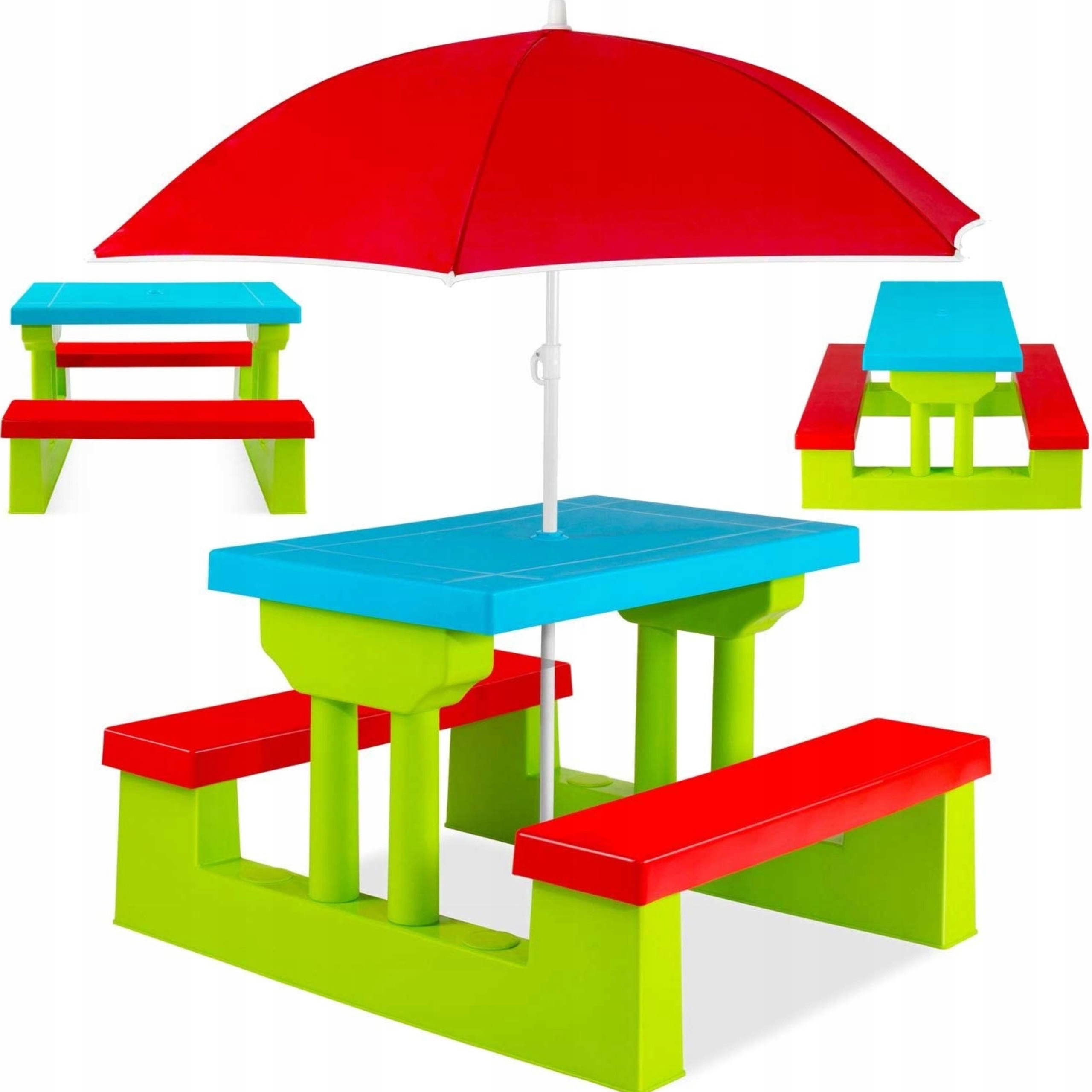 MEBLE OGRODOWE DLA DZIECI STÓŁ STOLIK DLA DZIECI Z ŁAWKĄ ŁAWKA + PARASOL