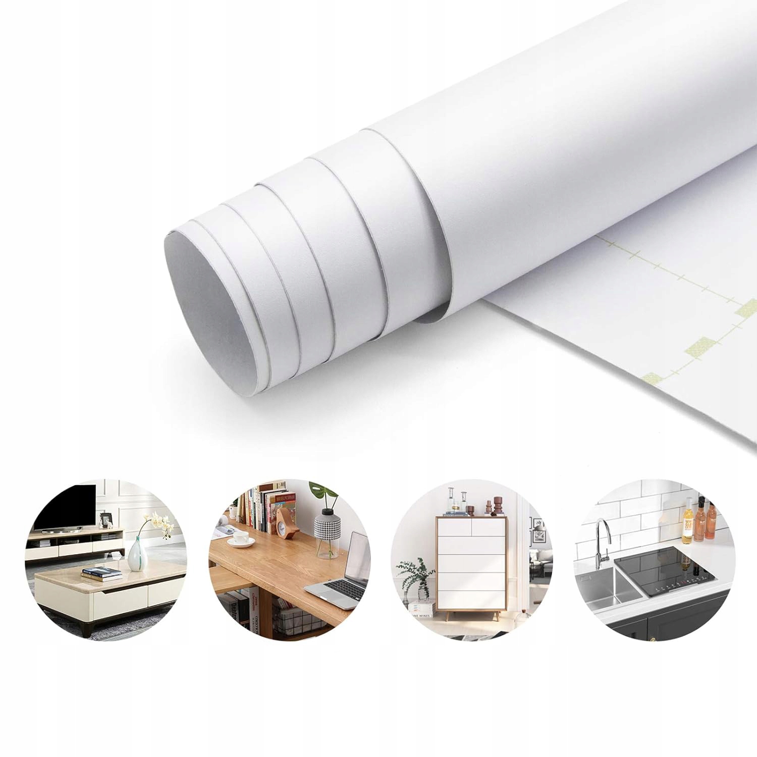 МЕБЛЕВА ФОЛЬГА, САМОКЛЕЮЧІ ШПАЛЕРИ, 60×500 СМ, БІЛА, ВОДОСТІЙКА, ДОМАШНЯ