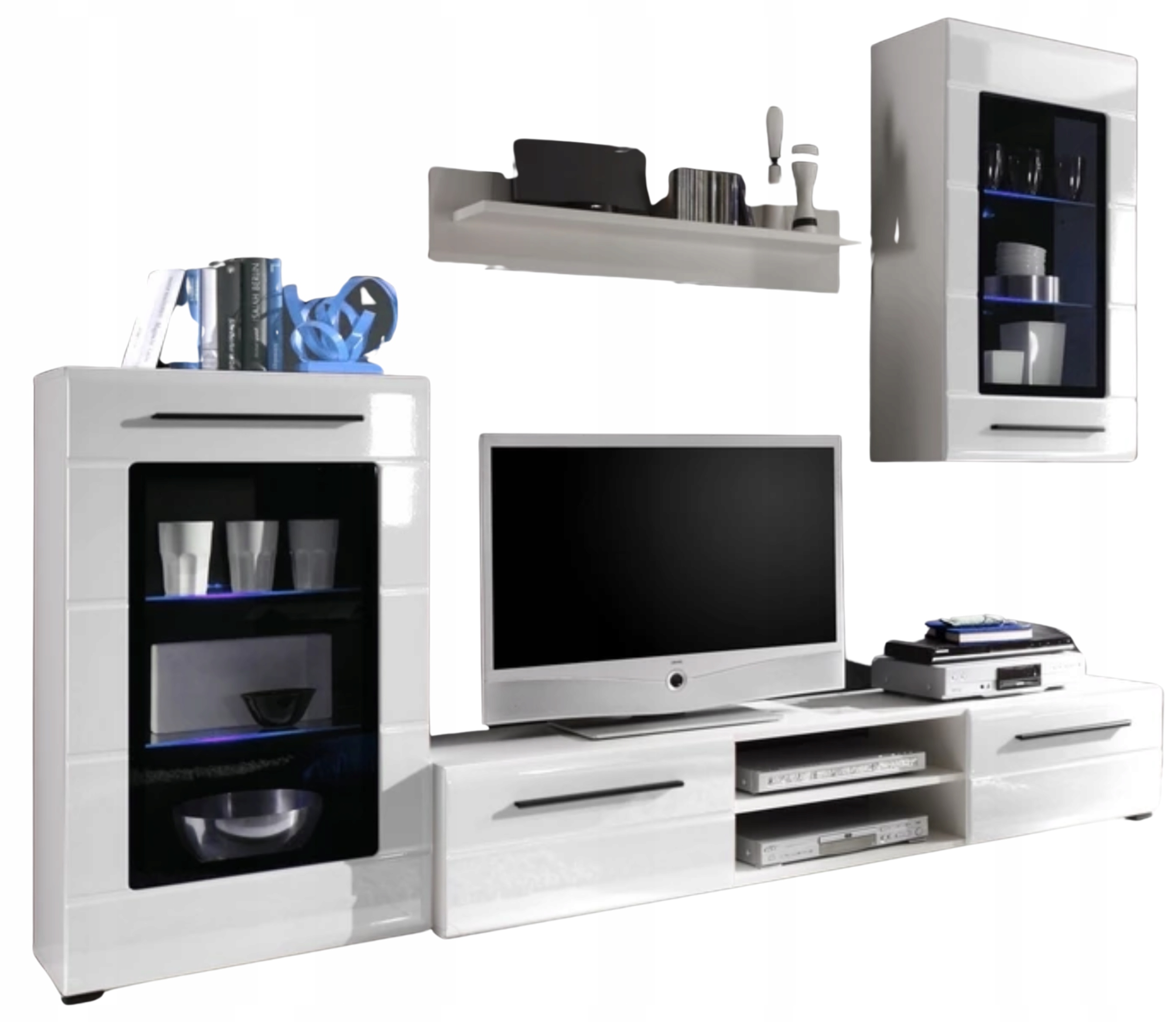 Меблева полиця PUMP МДФ білий глянець 240см тумба RTV полиця комод + LED