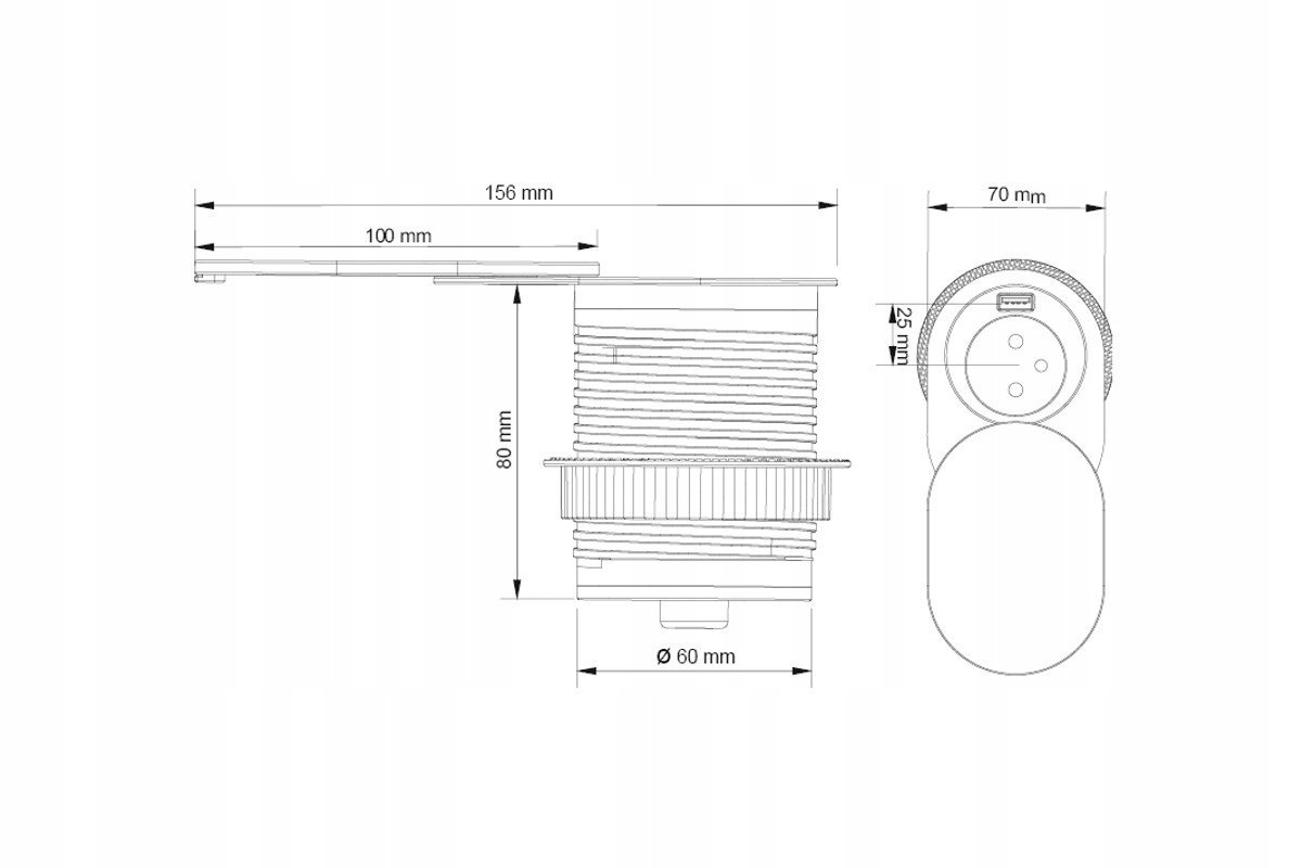 Розетка SLIDE BOX, утопленная в столешницу, с USB-портом, черная