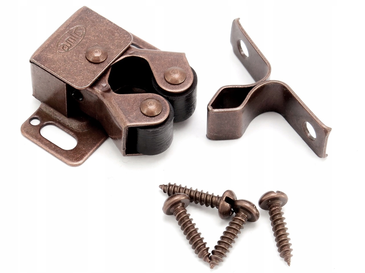 Высококачественная мебельная защелка. Сделано из оцинкованного листа. Замок имеет два независимо работающих и подпрыгивающих рук. Кроме того, они заканчиваются вращающимися роликами. Все работает очень стабильно и уверенно, не опасаясь повреждения, как это происходит в пластиковых версиях