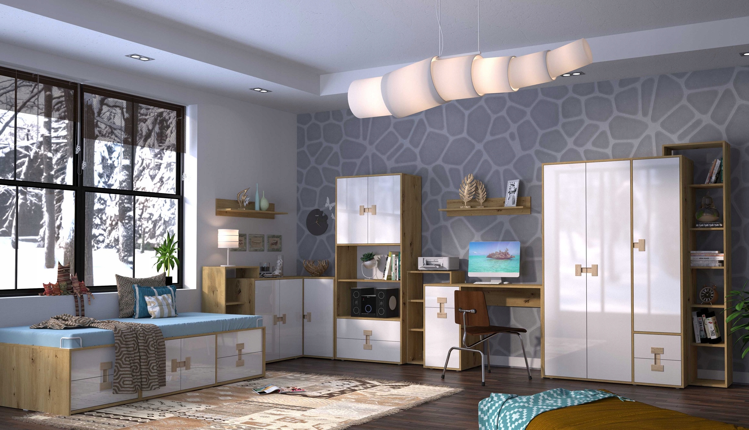 Система состоит из: шкафы, полки, комоды, столы, полки, кровати, половины