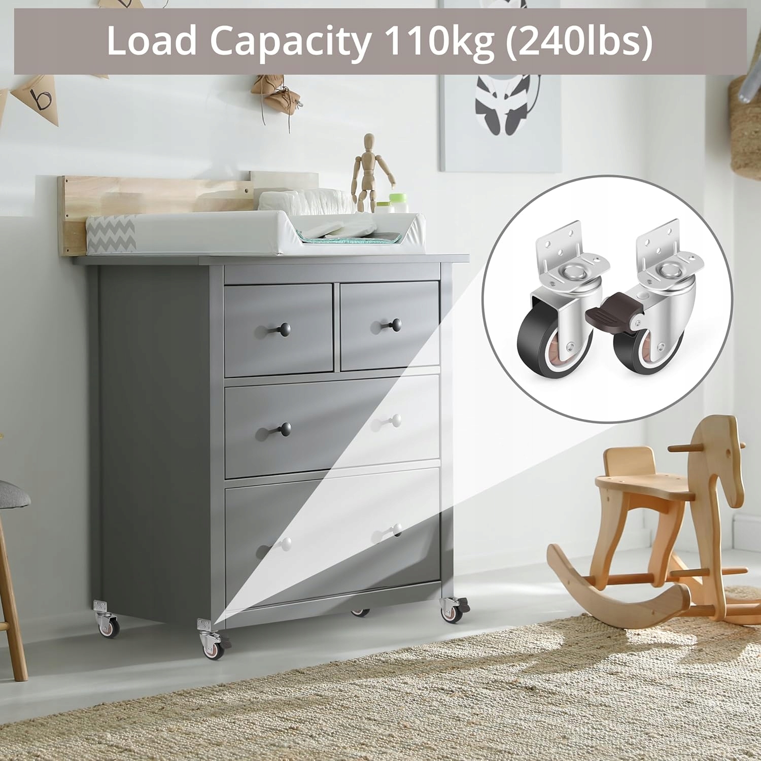 ✅ с максимальной общей емкостью до 110 кг, этот набор из 4 боковых колес идеально подходит для небольших шкафов, столов, кроватей и другой мебели со средней мебелью и другой библиотекой мебели. p>