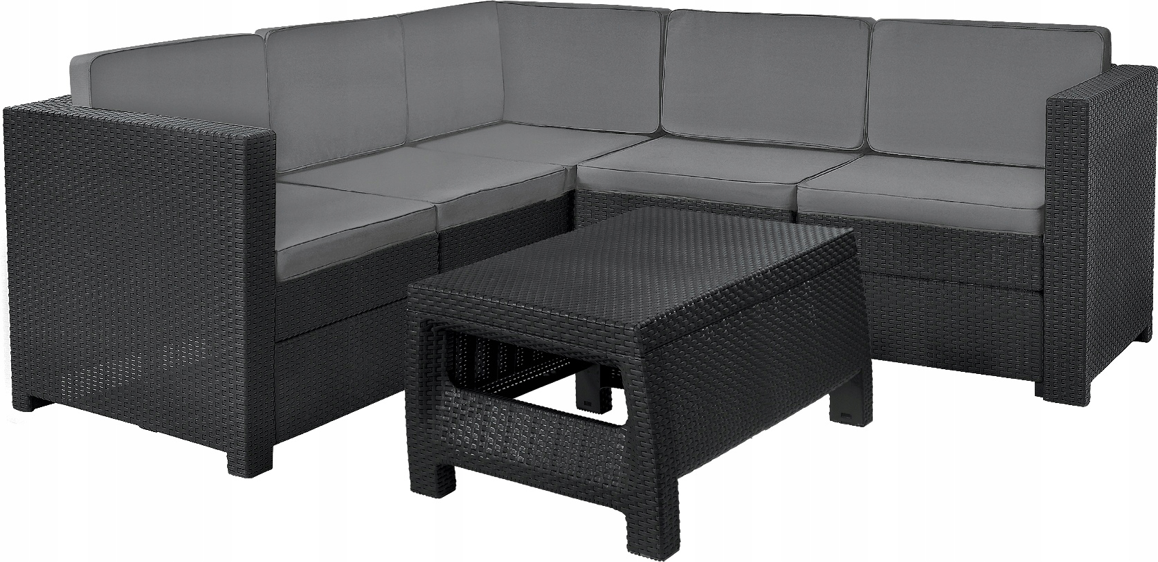 Садовая мебель, угловой диван ПРОВАНС КОМПЛЕКТ С ЖУРНАЛЬНЫМ СТОЛИКОМ с ротанговой структурой графитового цвета
