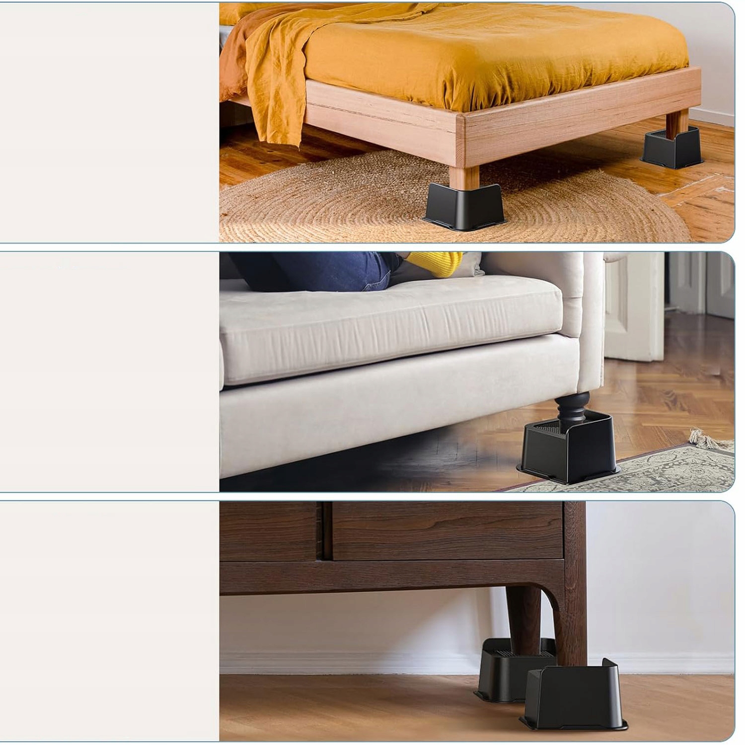 - Pomaga podnieś mebel o 4 cale, zapewniając więcej miejsca pod óżkiem, szafką, sofą itp. nośnoś do 6000 funtów i nie chwieje się.