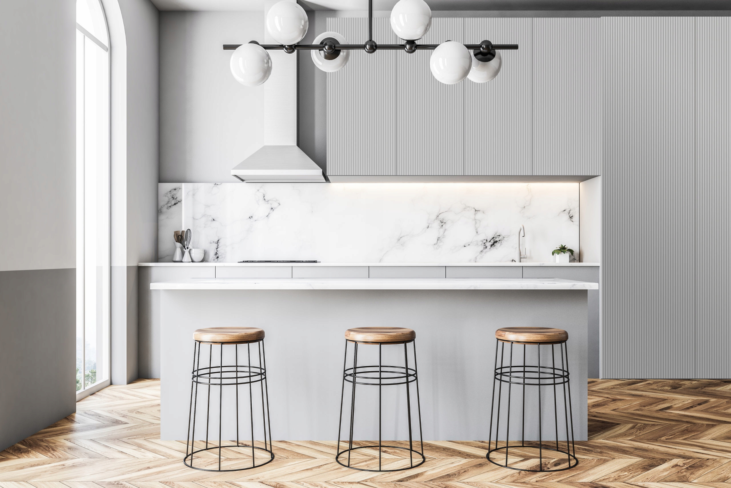 Фольгированные фасады — это фасады, изготовленные из плиты МДФ и спрессованные с пленкой ПВХ в специальном прессе. Фольгированные фасады дают нам широкий выбор декора. Помимо одноцветных декоров мы можем выбрать пленки ПВХ со структурой дерева, а также имитирующие бетон, камень или мрамор. В наличии есть как матовая, так и глянцевая фольга. Все конструкции фрезерованных фасадов и фасадов с 3D-панелью из нашего предложения мы можем отделать матовой фольгой.