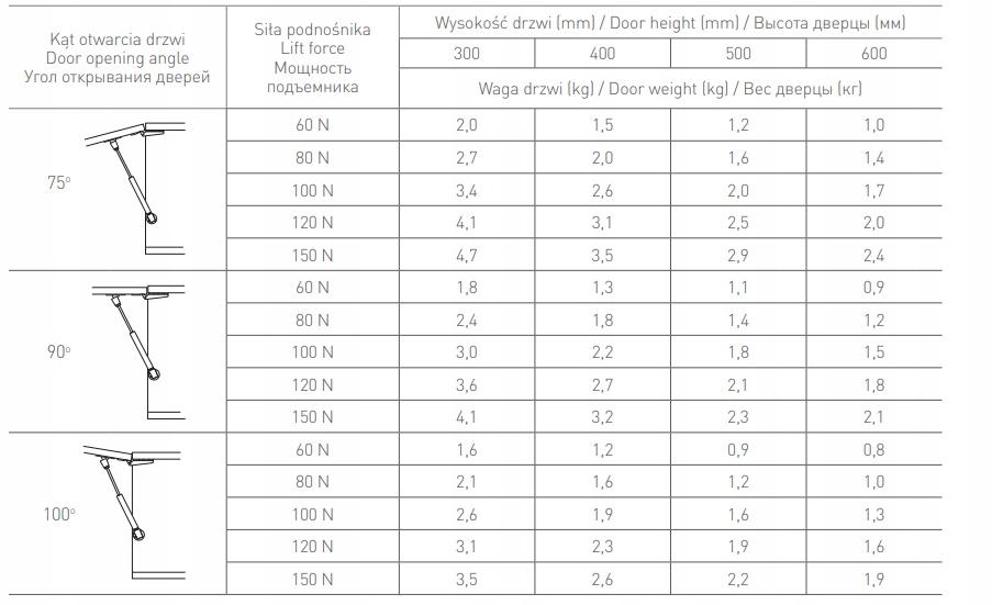 ✅Примерный угол открытия [°]: 75-100