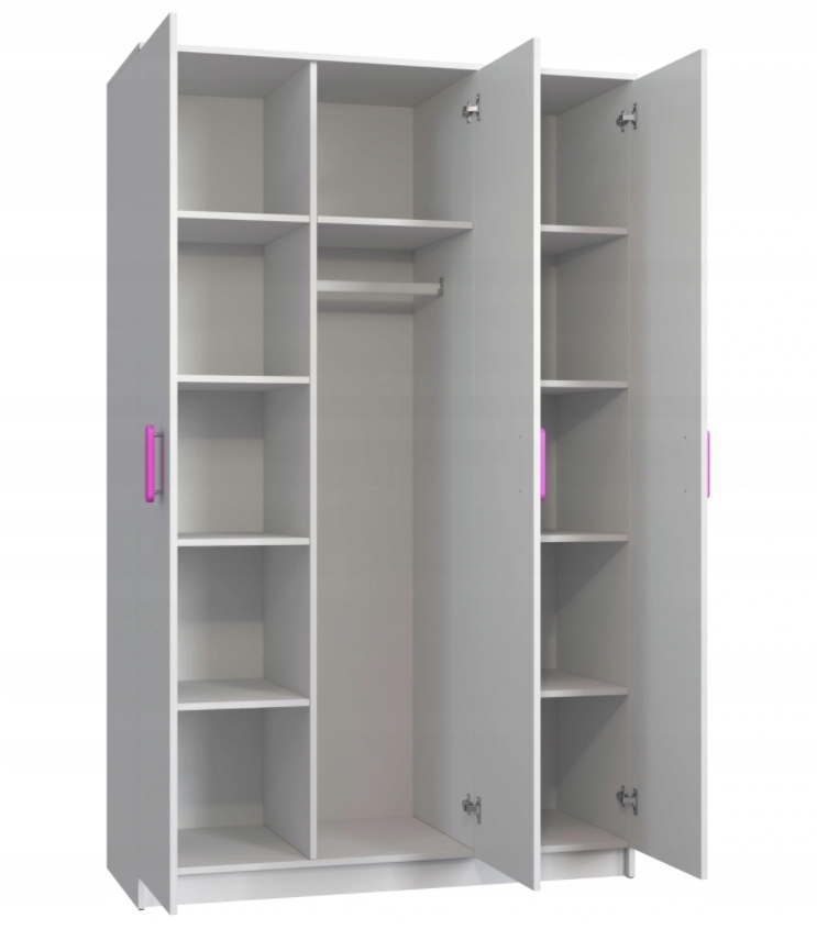 Функциональный, вместительный, трехдверный. Предмет мебели, необходимый в каждой детской комнате. Место для хранения одежды и игрушек. За тремя распашными дверями находится пространство, разделенное на три части. Всего у нас 9 полок и одна высокая полка со штангой для подвешивания одежды.