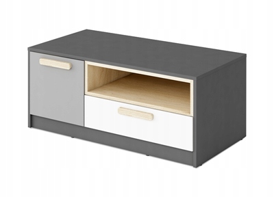 Функциональный ТВ шкаф POK 11 с выдвижным ящиком, дверцей и полкой для ТВ-аппаратуры. Запираемые места позволяют хранить диски, игры и другие аксессуары. Адаптирован для помещений с наклонами.