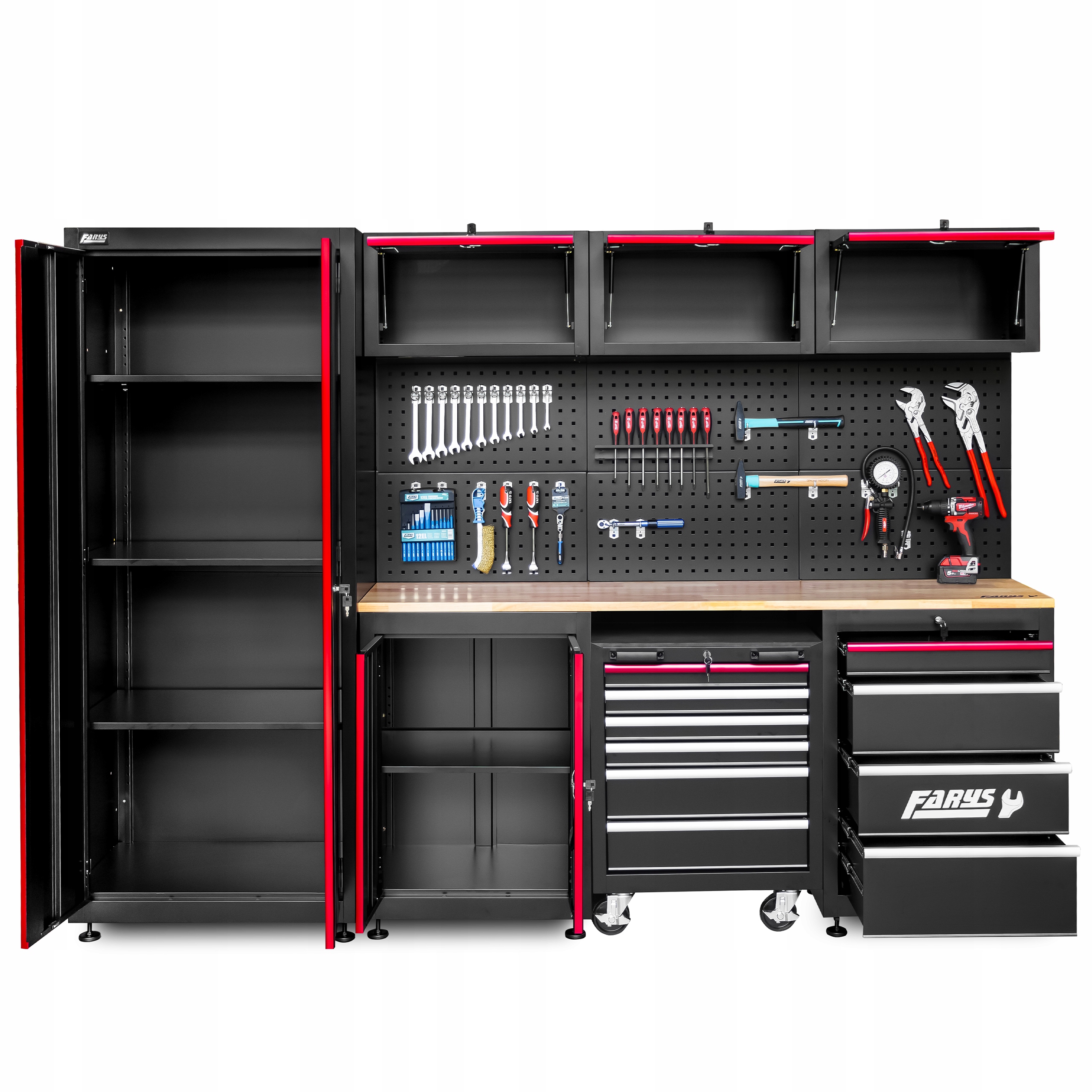 Набор гаражной мебели не только позволяет вам организовать пространство в гараже, подвале или домашней мастерской, но также обеспечивает удобную рабочую поверхность для незначительного ремонта и DIY. Современный дизайн и цвета придадут каждому пространству профессиональный и элегантный вид. Набор FR4113 является одним из многих вариантов из серии гаражной мебели, которая будет доступна в нашем предложении.