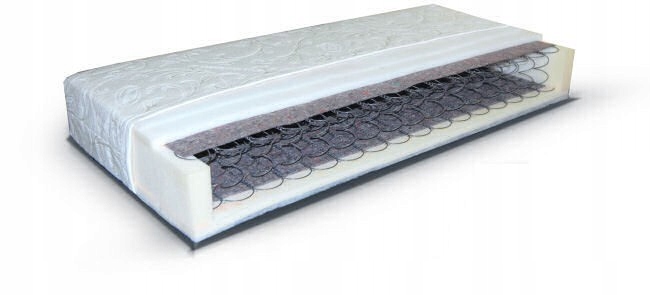 Матрац пороно-пружинный двухсторонний. Пена Т-25 толщиной 2 см. Чехол изготовлен из трикотажной ткани, съемный, можно стирать при 40 С. Поролон с обеих сторон покрыт тканью плотностью 100 г/м2. Верхняя и нижняя части пружин покрыты фетром. и слой пенопласта Т-25-2см. Пружины изготовлены из высококачественной проволоки диаметром 2,2 мм. Высота 17:18 см.
