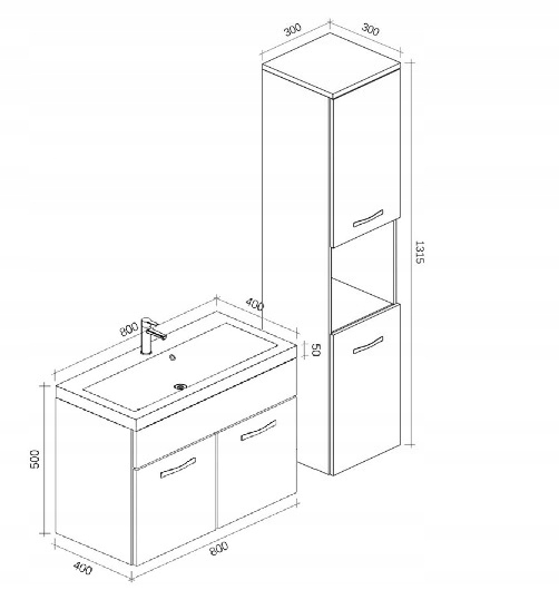 Меблі для ванної кімнати ЕТНА 80х40 тумба, умивальник, ст