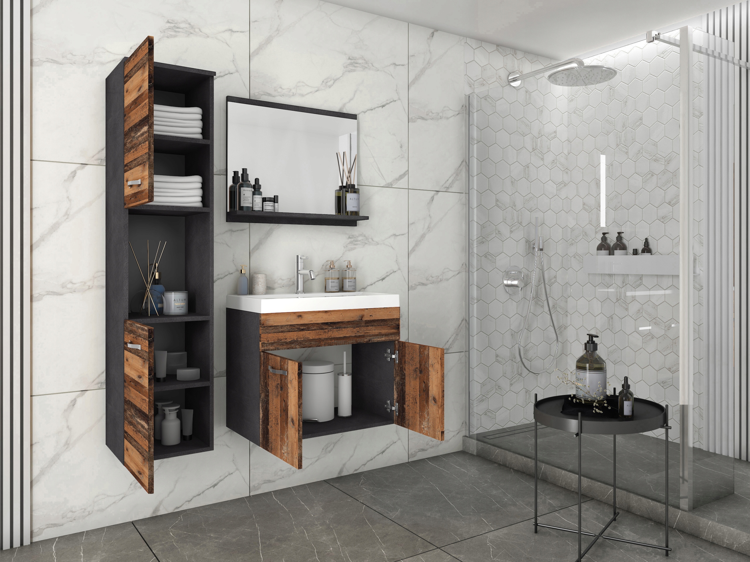 Мебель для ванной комнаты Montrea – это современная подвесная мебель для ванной комнаты. Шкафы вместительные, в них можно спрятать чистящие средства и косметику, сохраняя помещение аккуратным и эстетичным. Мебель изготовлена из высококачественных материалов, устойчивых к царапинам и влаге.