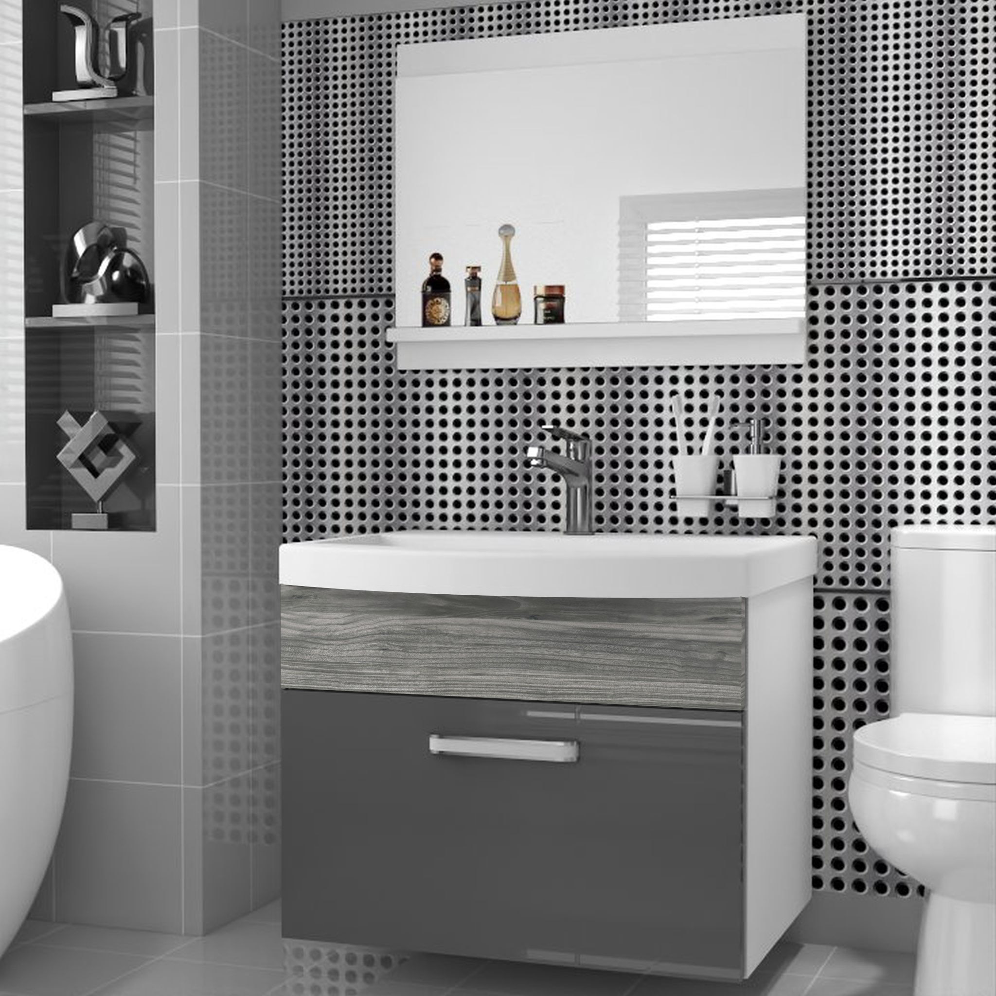 Мебель для ванной комнаты с ЗЕРКАЛОМ и ГЛЯНЦЕВОЙ РАКОВИНОЙ