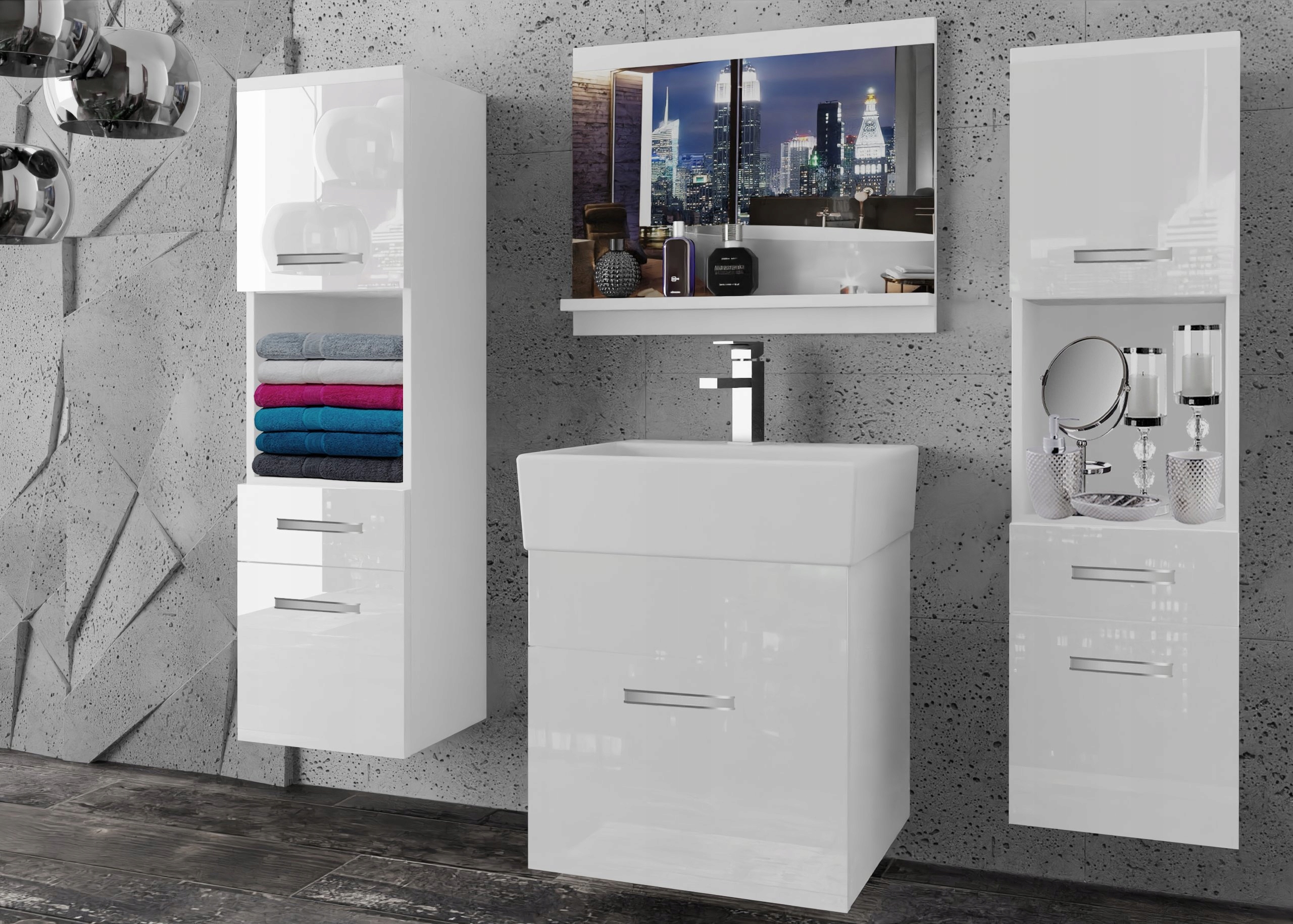 Меблі для ванної кімнати з ДЗЕРКАЛОМ з ГЛЯНЦЕВУЙ РАДИНОЮ