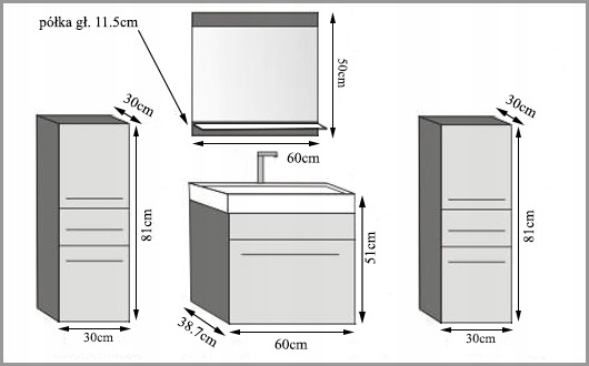 Пожалуйста, проверьте точные размеры отдельных шкафов, чтобы убедиться, что представленный комплект точно подойдет к вашей комнате.