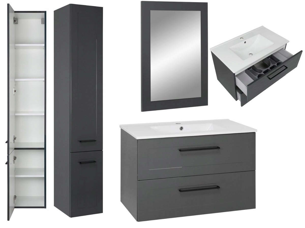 Комплект мебели для ванной STELLA ANTRACYT 80 шкаф, умывальник, зеркало, штанга