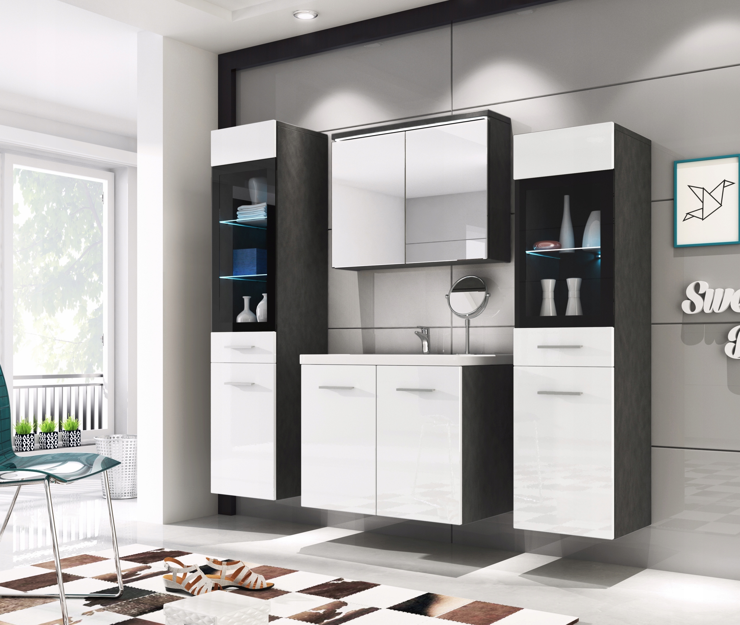 Функциональная мебель Udine II будет отлично смотреться в современном > ванная комната, а LED освещение придаст необычный эффект. Вместительные шкафчики позволят разместить чистящие средства, косметику и полотенца, придав ванной комнате эстетичный вид.