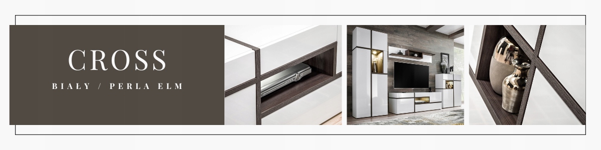 Коллекция кросс -мебели идеально подходит для людей, ищущих стильную и функциональную мебель для вашей гостиной. Мебель была сделана из жемчужного дерева высочайшего качества, которая в сочетании с белыми фронтами придает им современный вид. Коллекция состоит из шкафа RTV, полки, сундуков с ящиками и полками, и каждый из этих элементов был разработан для обеспечения удобного хранения различных предметов .