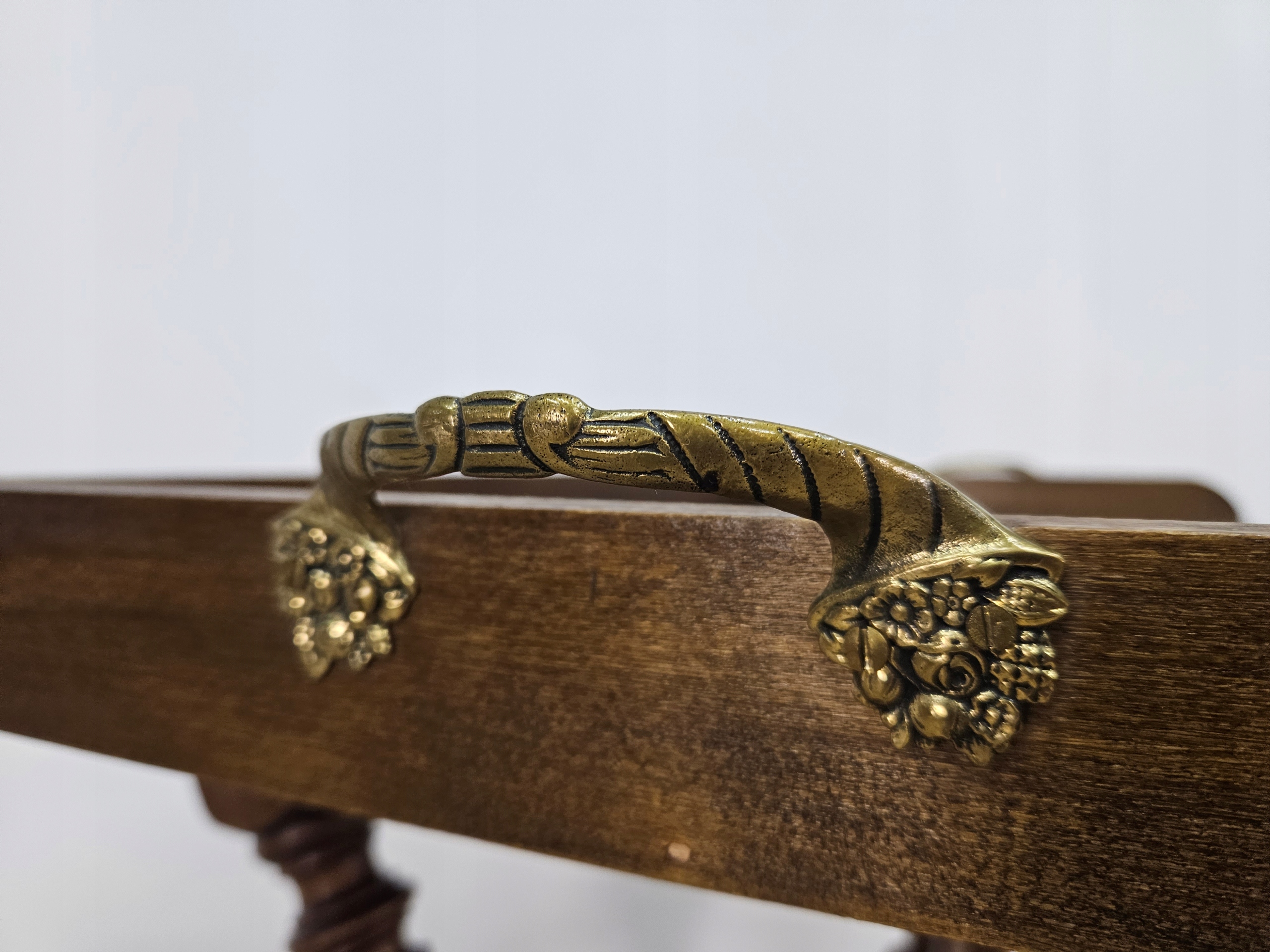 Top -Up Countertop затем служит подносом, имеет две декоративные латунные ручки.