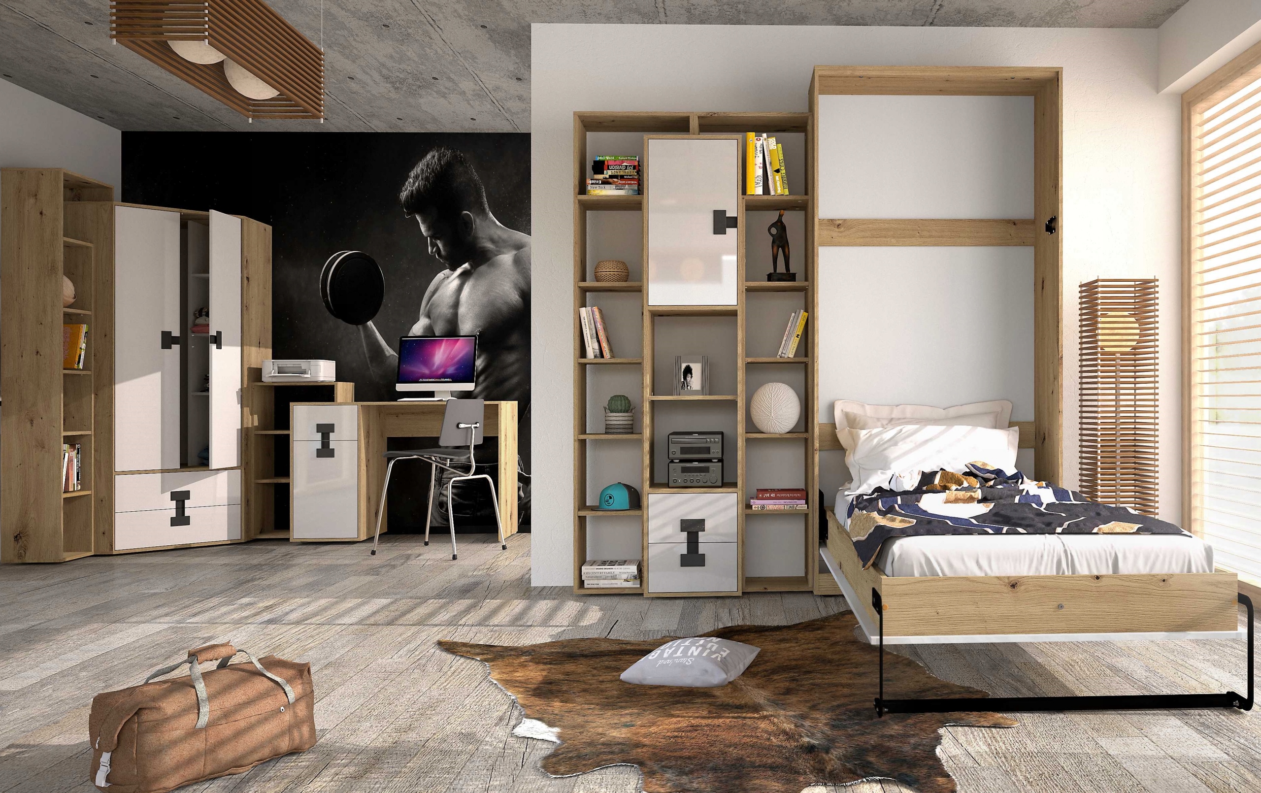 В состав системы входят: шкафы, полки, комоды, письменные столы, полки, кровати, полукровати